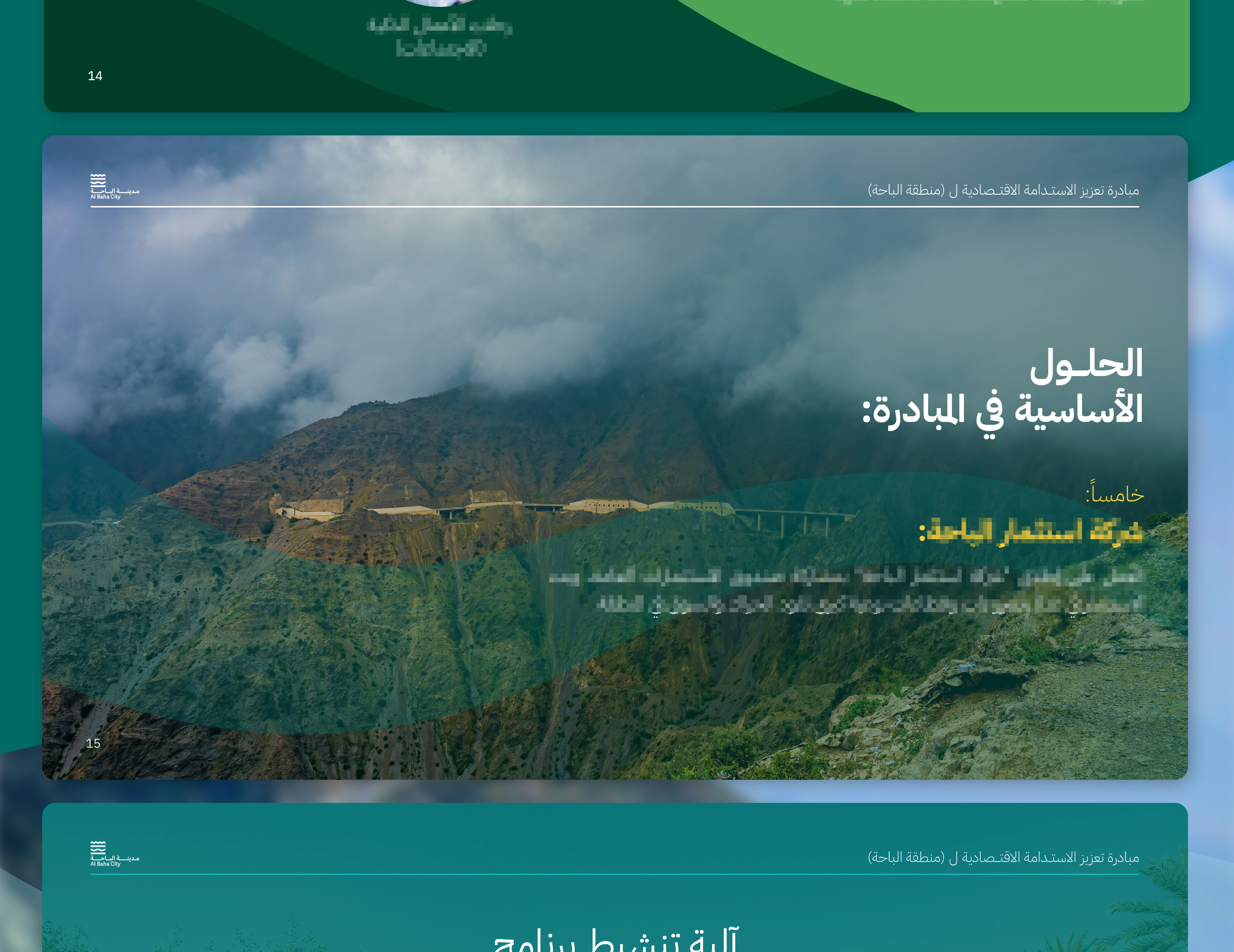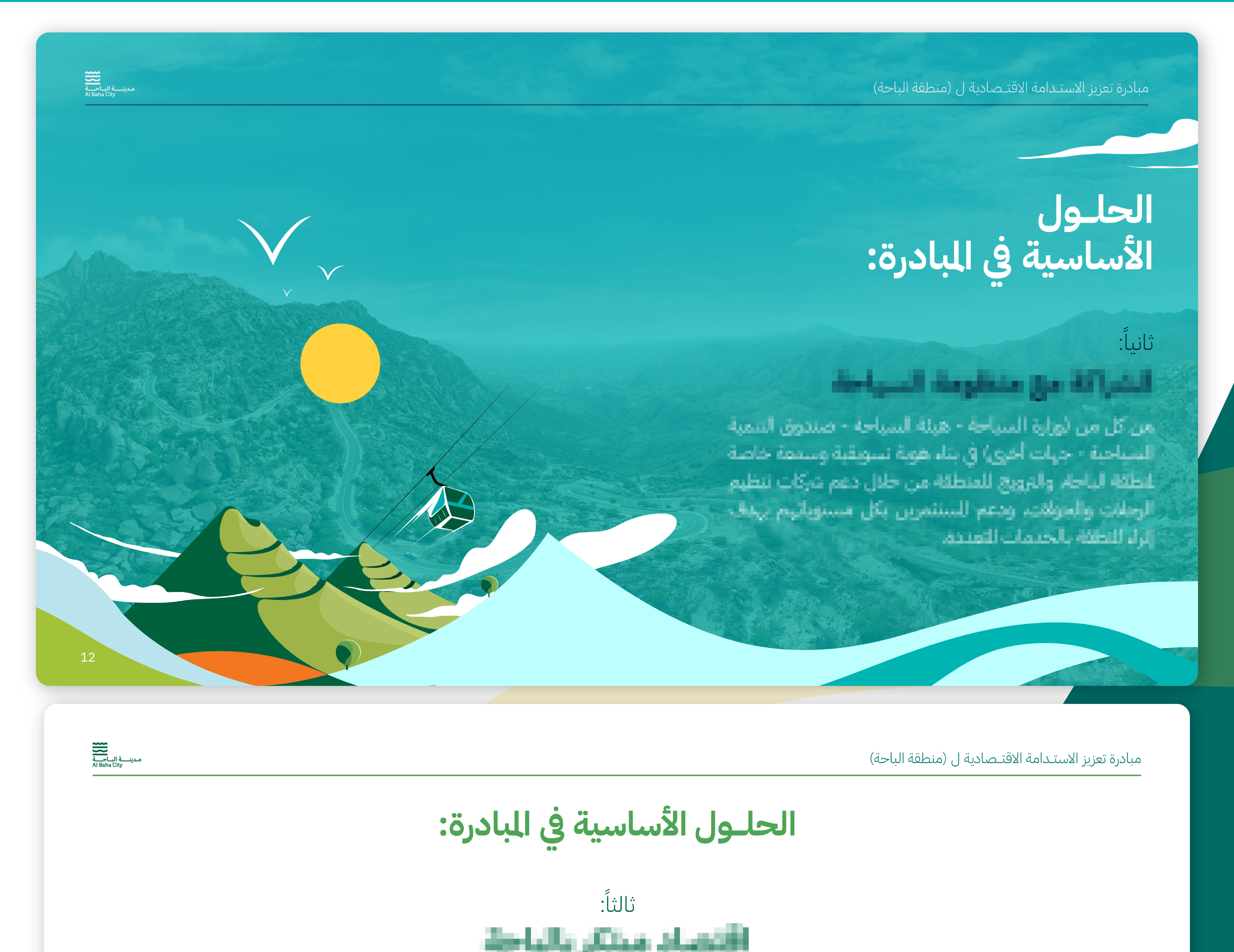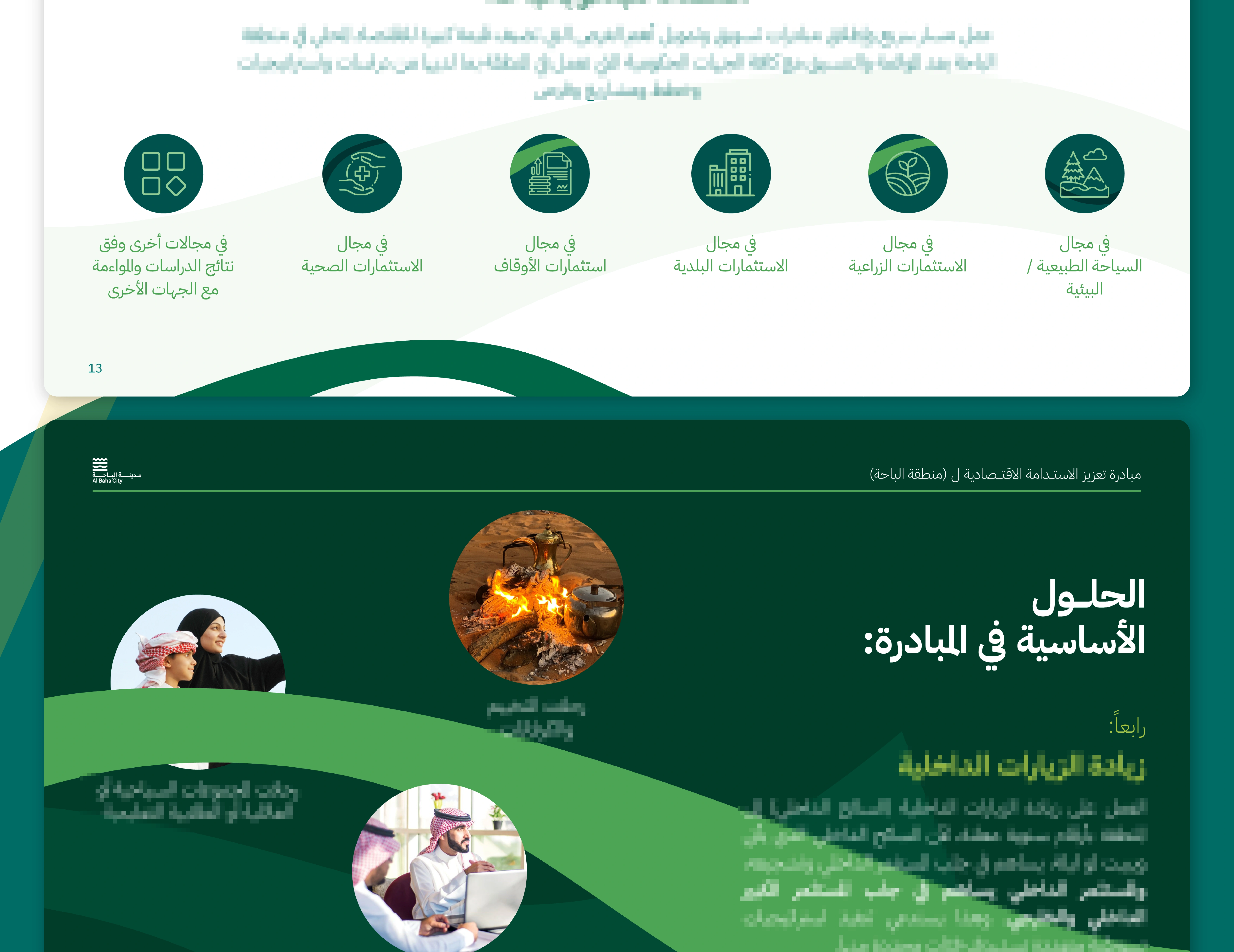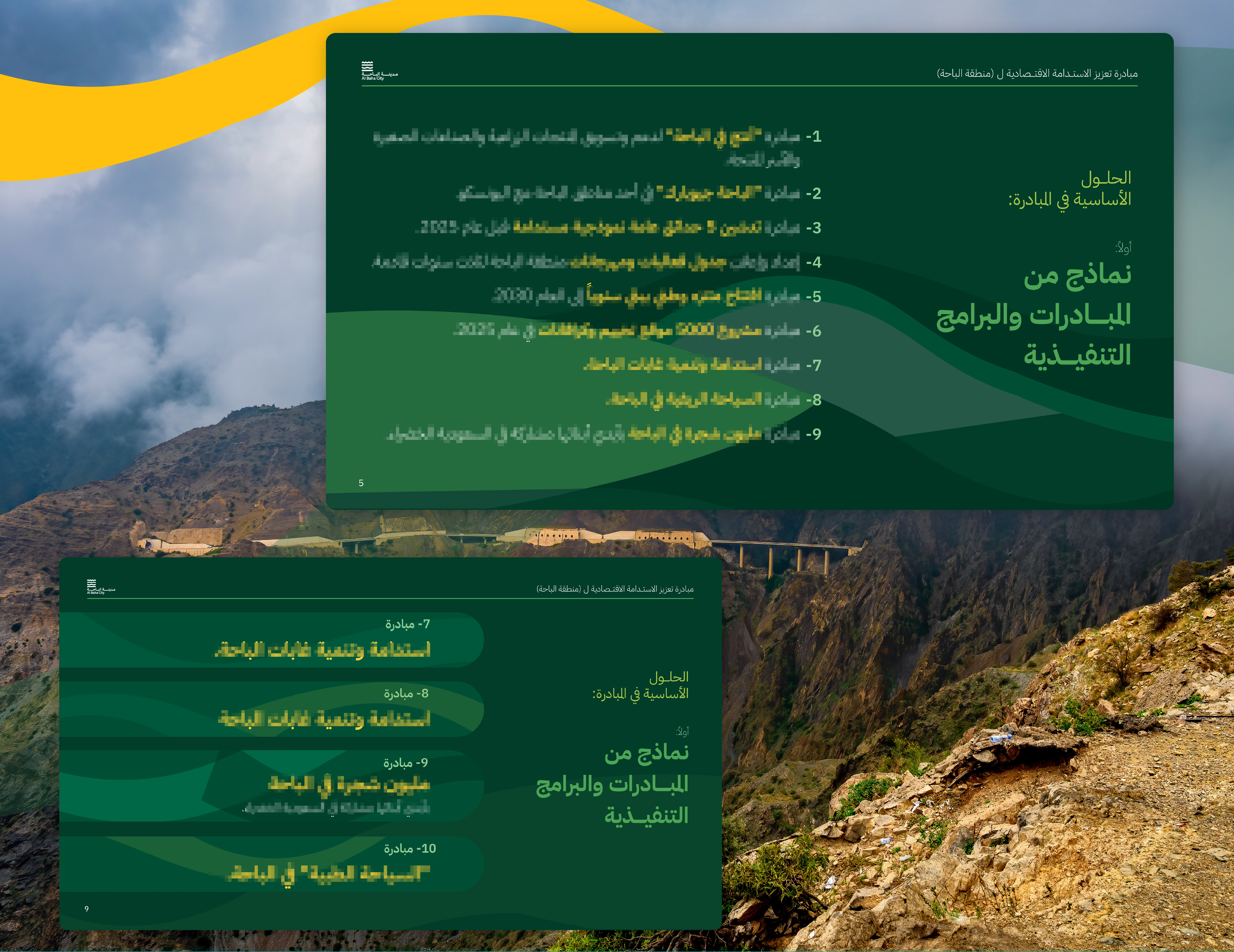 Al Bahaa sustainability initiative for Saudi National Day 93 (2023) with a landscape-based branding presentation showcasing the city's green vision.