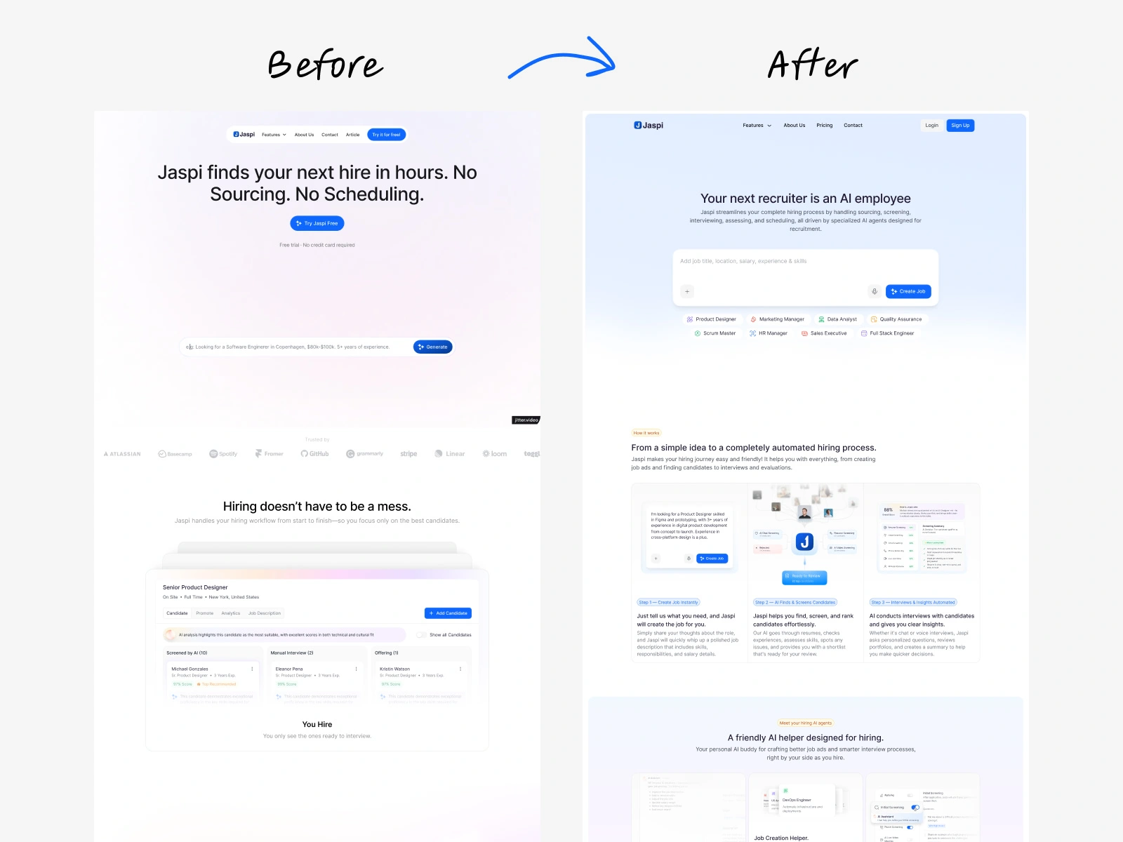 Visually, the new design leans into a cleaner layout, softer gradients, and clearer typography hierarchy so each section has a single, obvious takeaway. Cards, pricing, and testimonials were redesigned to be easier to scan, especially on smaller screens, making the overall experience faster to understand and more trustworthy.
