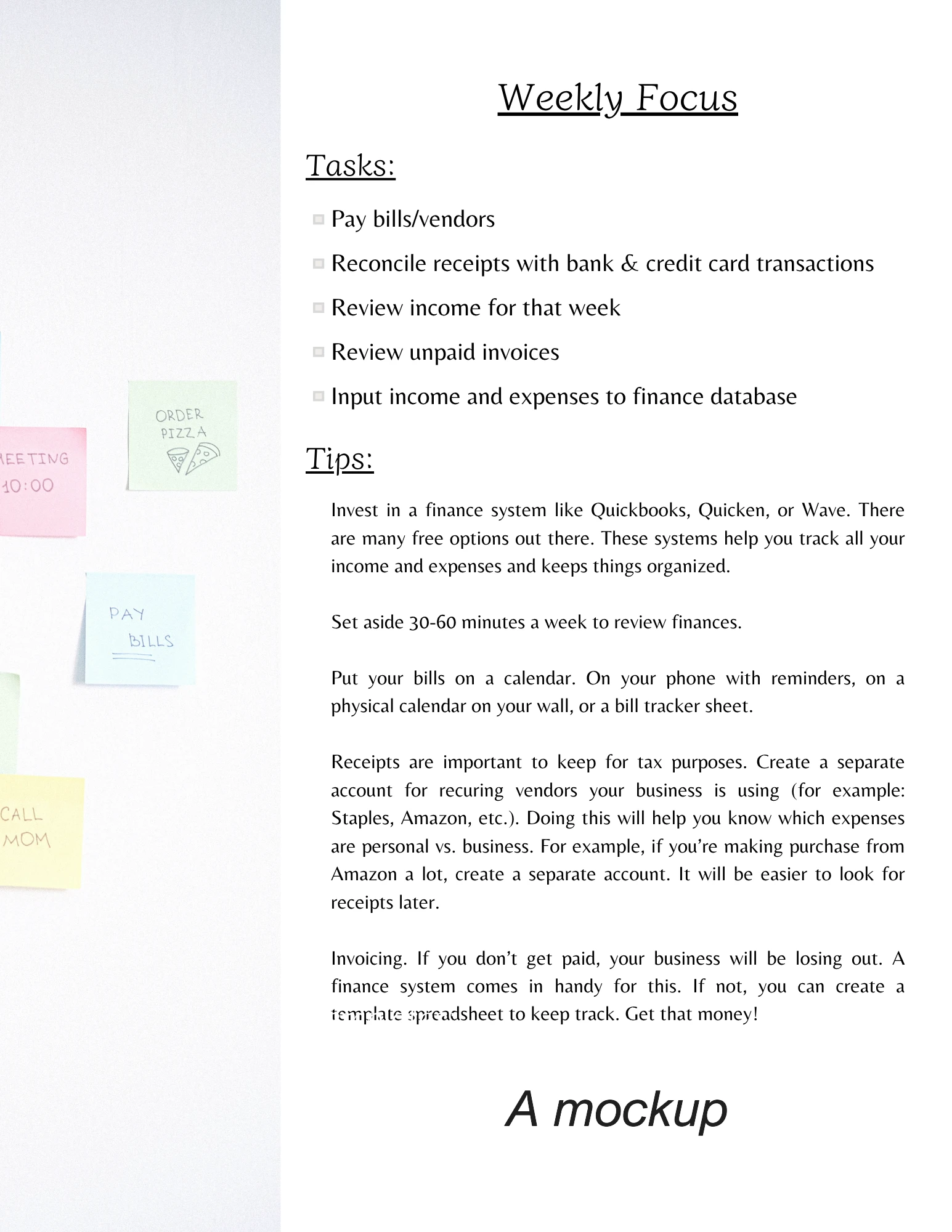A short bookkeeping guide to keep track of the tedious tasks of business finances. Also includes tips I've learned though my experience working in finances.