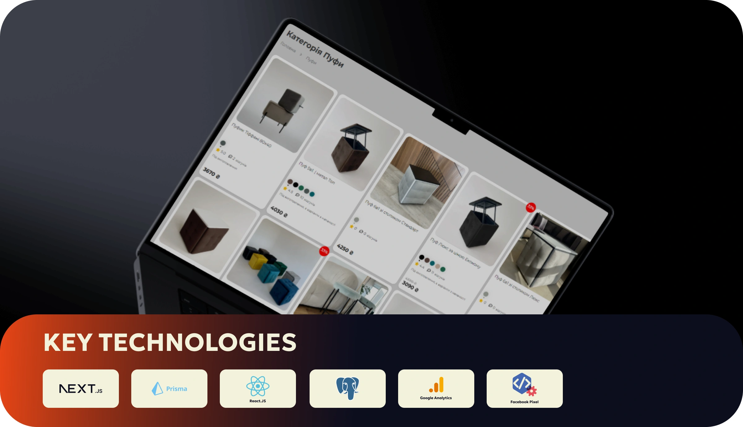 Ultra-fast eCommerce site for furniture brand. 3-click checkout, colour preview, +15% purchases, $390K+ sales. Built with Next.js, Prisma, WayforPay