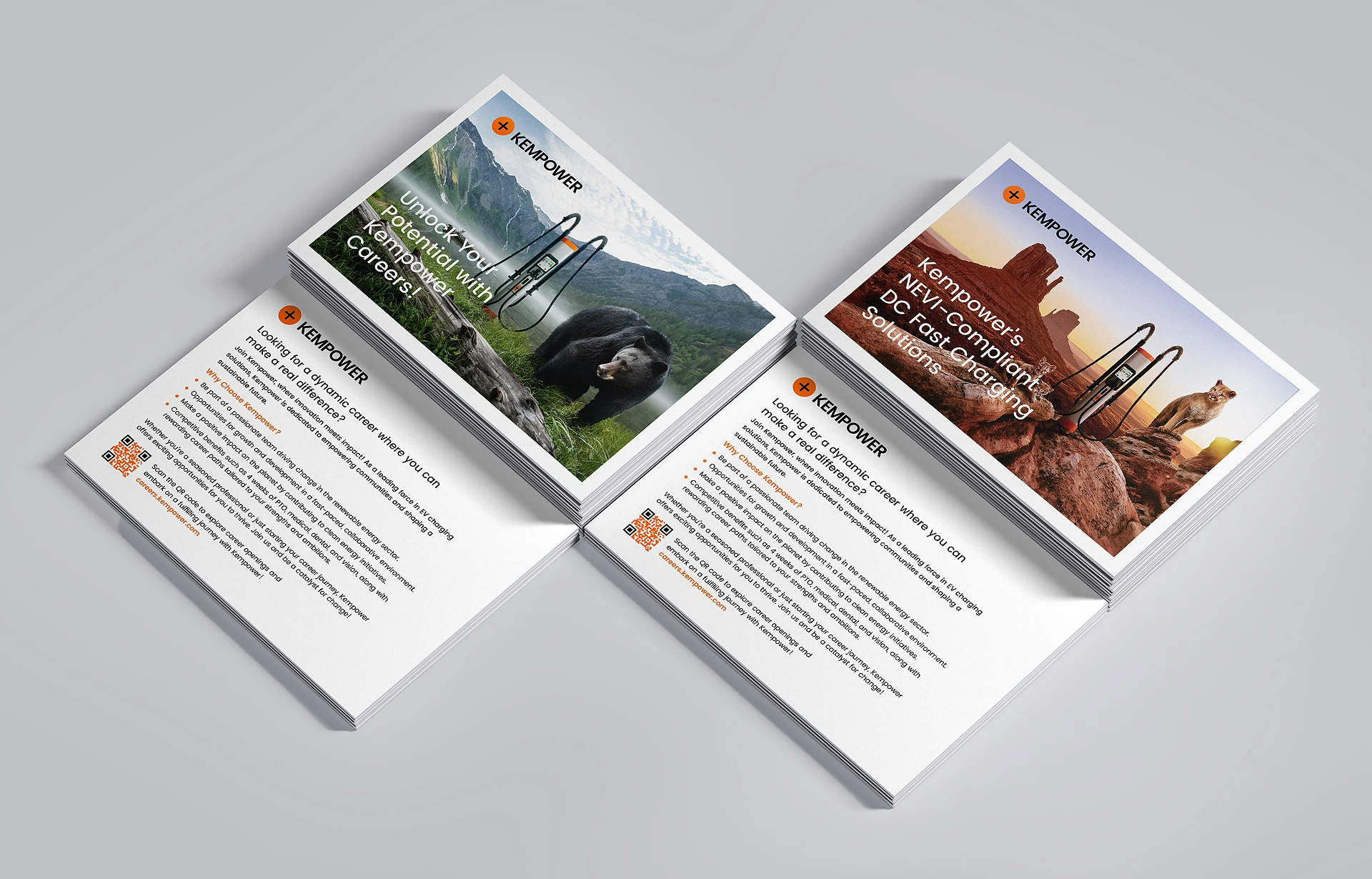 KEMPOWER designs and manufactures DC fast charging solutions for electric vehicles. Originally founded in Finland, KEMPOWER recently expanded to Durham, NC, establishing their new headquarters. Their vision is to create a society powered by fully electric transportation, contributing to a cleaner and more sustainable world. Leveraging our success with other prominent brands, we were engaged as a creative vendor to support their North American marketing and brand team with daily design needs.