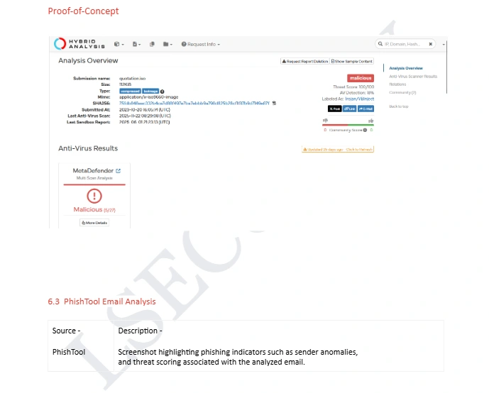 I perform advanced Malware Analysis as a Cybersecurity Specialist, Security Engineer, and Cybersecurity Expert, analyzing malicious files, URLs, and indicators of compromise to support Security Operations Center (SOC) and Information Security teams. My work focuses on detecting threats, understanding attacker behavior, and strengthening overall Cybersecurity defenses.