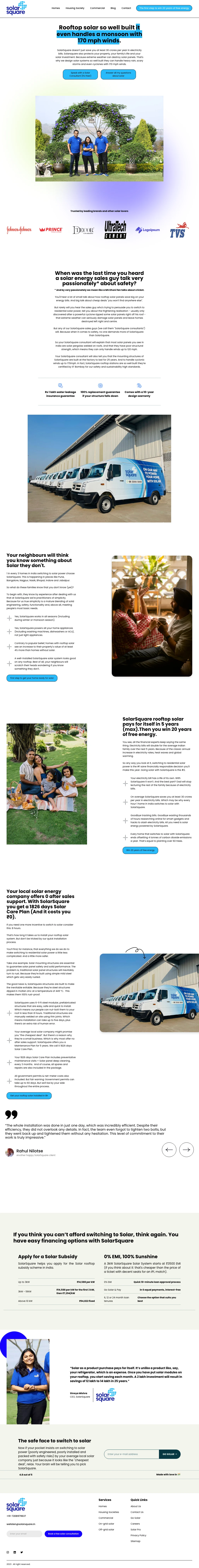 In 2023, I wrote SolarSquare’s residential solar copy—panels so strong they survive 170 mph cyclones. Client approved, later used on product pages.
