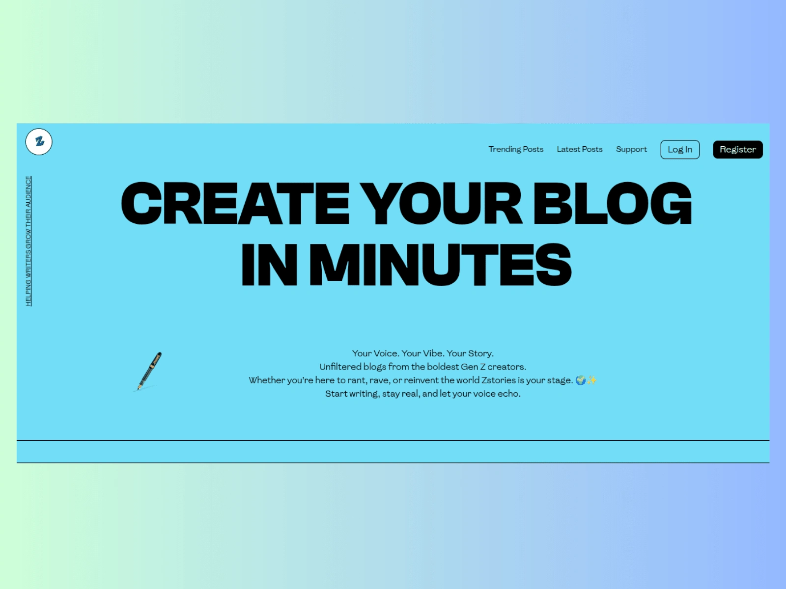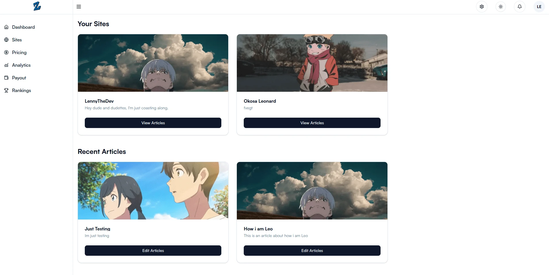 Z-stories is a multi-user blogging platform for Gen-Z, a place to tell their stories and express themselves. Created with Next.js, React, Tip-Tap for a rich text editor and UploadThing for uploading images and dealing with media. Users can create sites, create articles on sites and share to their friends and audiences.
