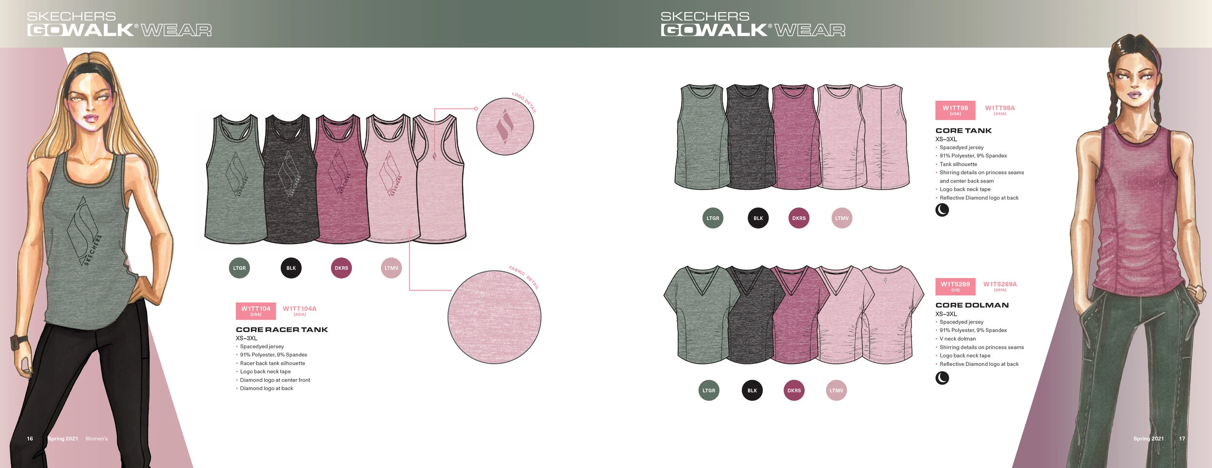 The process involved every team in the apparel department, requiring close collaboration with technical designers, apparel designers, product developers, and the marketing and sales teams. Alignment across all departments was essential to ensure accurate and consistent information could be included in the booklet. Many of the graphic elements featured in the season’s T-shirt lineup were also used throughout the booklet, along with the color stories applied across the full line. Once approved by the legal department, the booklet was sent to print and distributed at the sales conference.