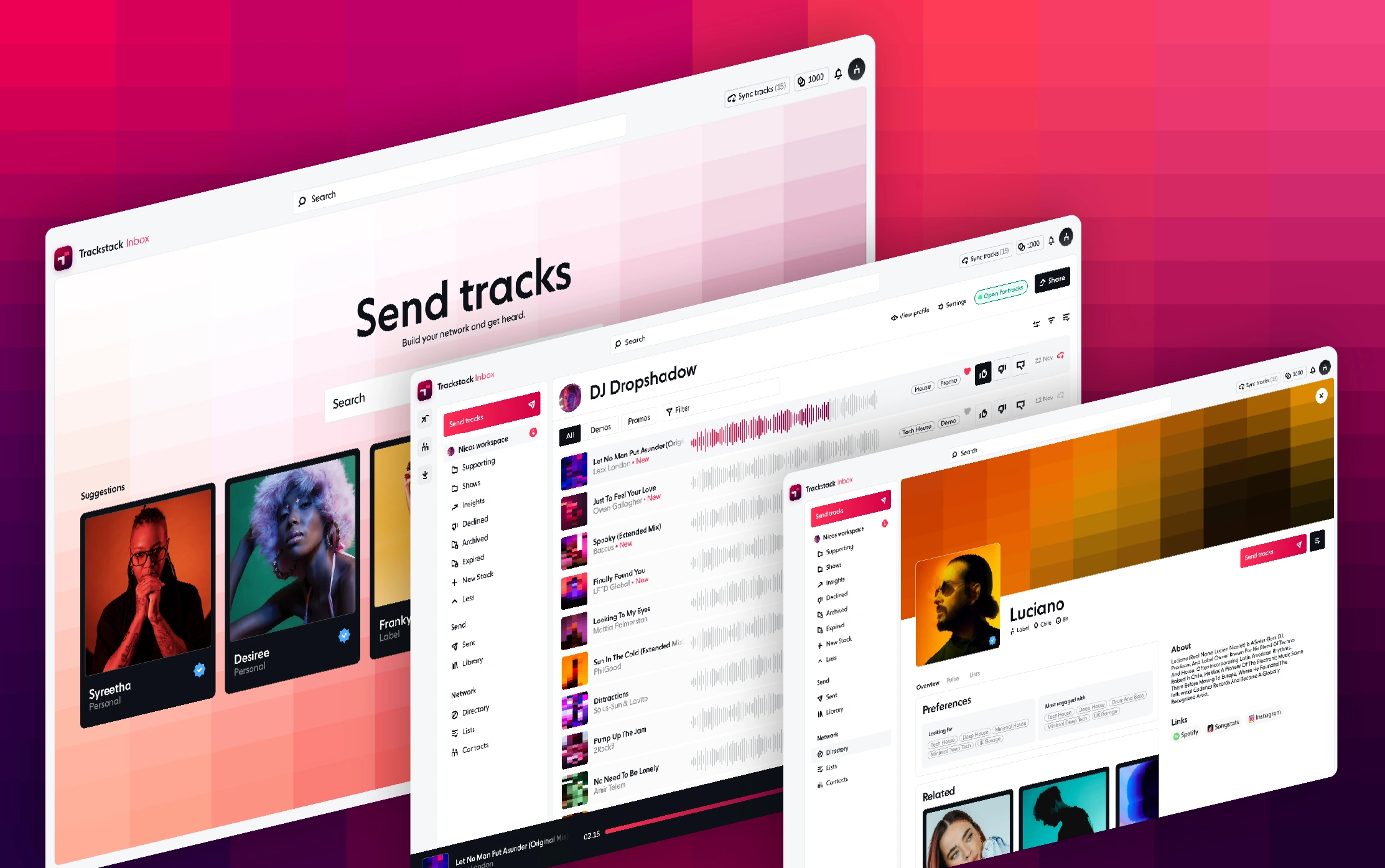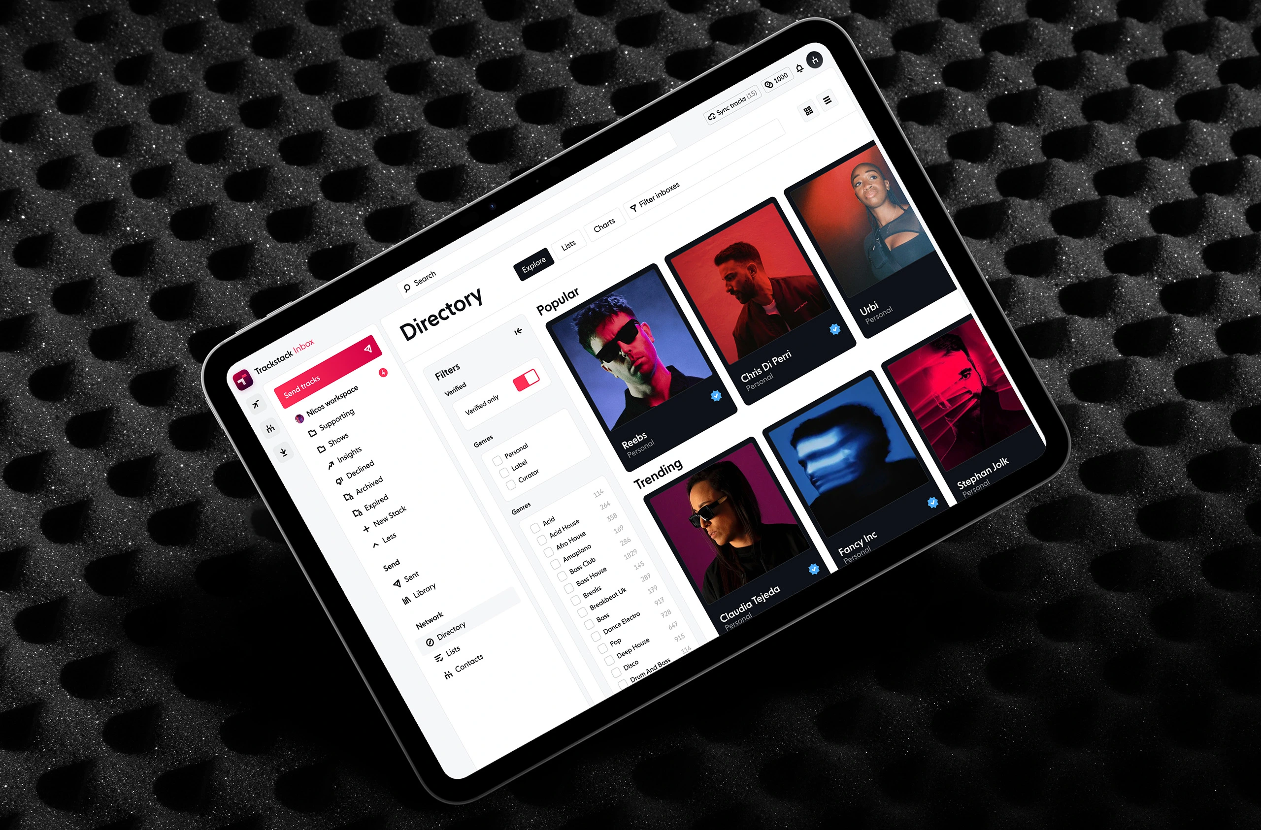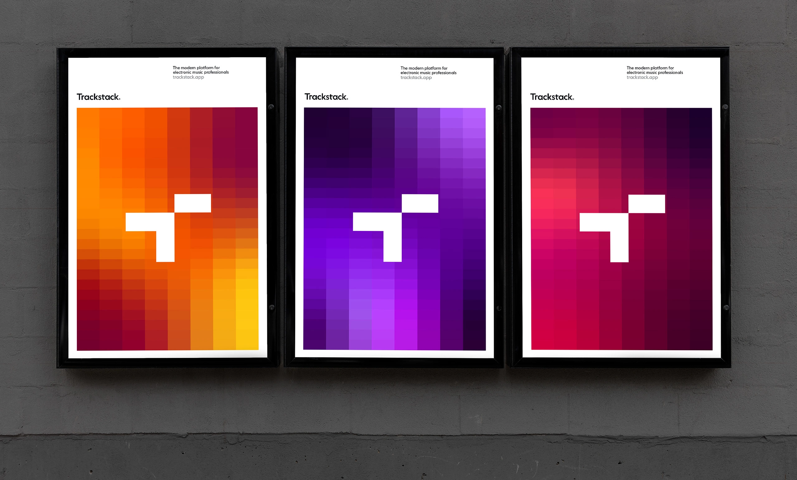 The solution was The Stack, a dynamic gradient tile-pattern derived from the track-shape in the logotype. The stack is used in varying color for each of the sub brands and can also be used for 3rd party videos and imagery to make them into ownable assets for the brand. The symbol for Trackstack consists of the letter T, with one of the horisontal bars raised to represent a track while the angled shape symbolizes an arrow that highlights or promotes the track. The visual metaphor of a track also act as a unifying element throughout the visual identity, tying together the logo, typography, icons, background patterns and image treatment.