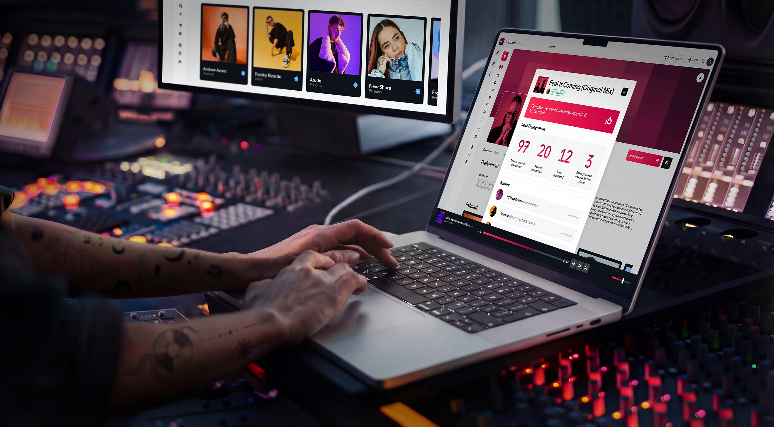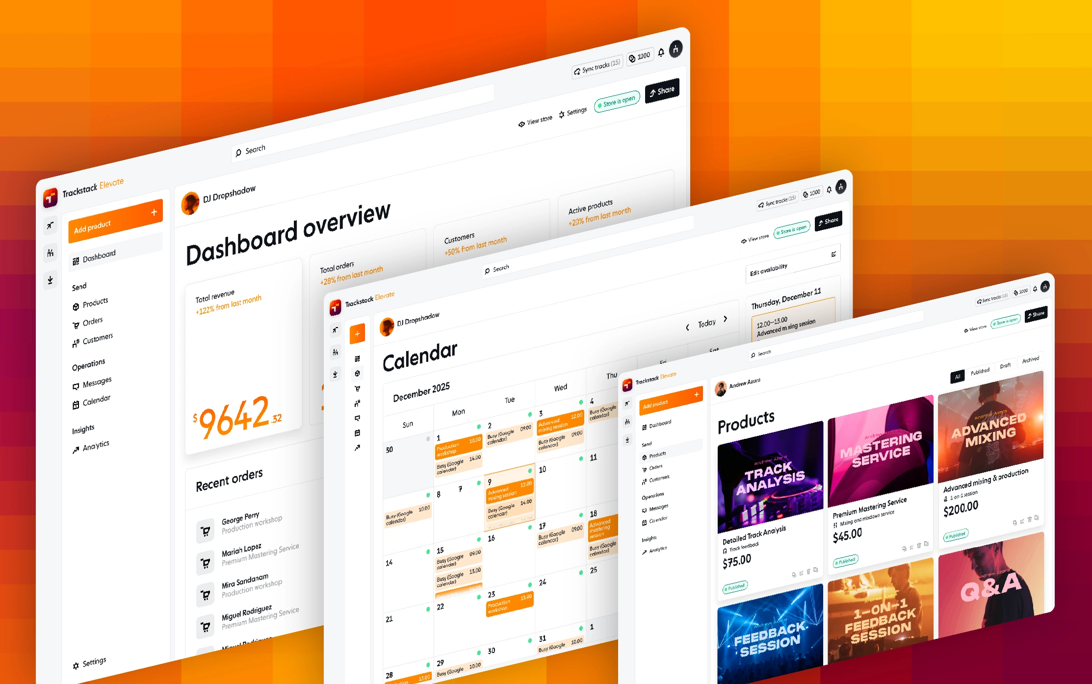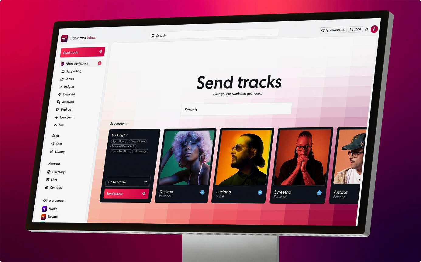 The solution was The Stack, a dynamic gradient tile-pattern derived from the track-shape in the logotype. The stack is used in varying color for each of the sub brands and can also be used for 3rd party videos and imagery to make them into ownable assets for the brand. The symbol for Trackstack consists of the letter T, with one of the horisontal bars raised to represent a track while the angled shape symbolizes an arrow that highlights or promotes the track. The visual metaphor of a track also act as a unifying element throughout the visual identity, tying together the logo, typography, icons, background patterns and image treatment.
