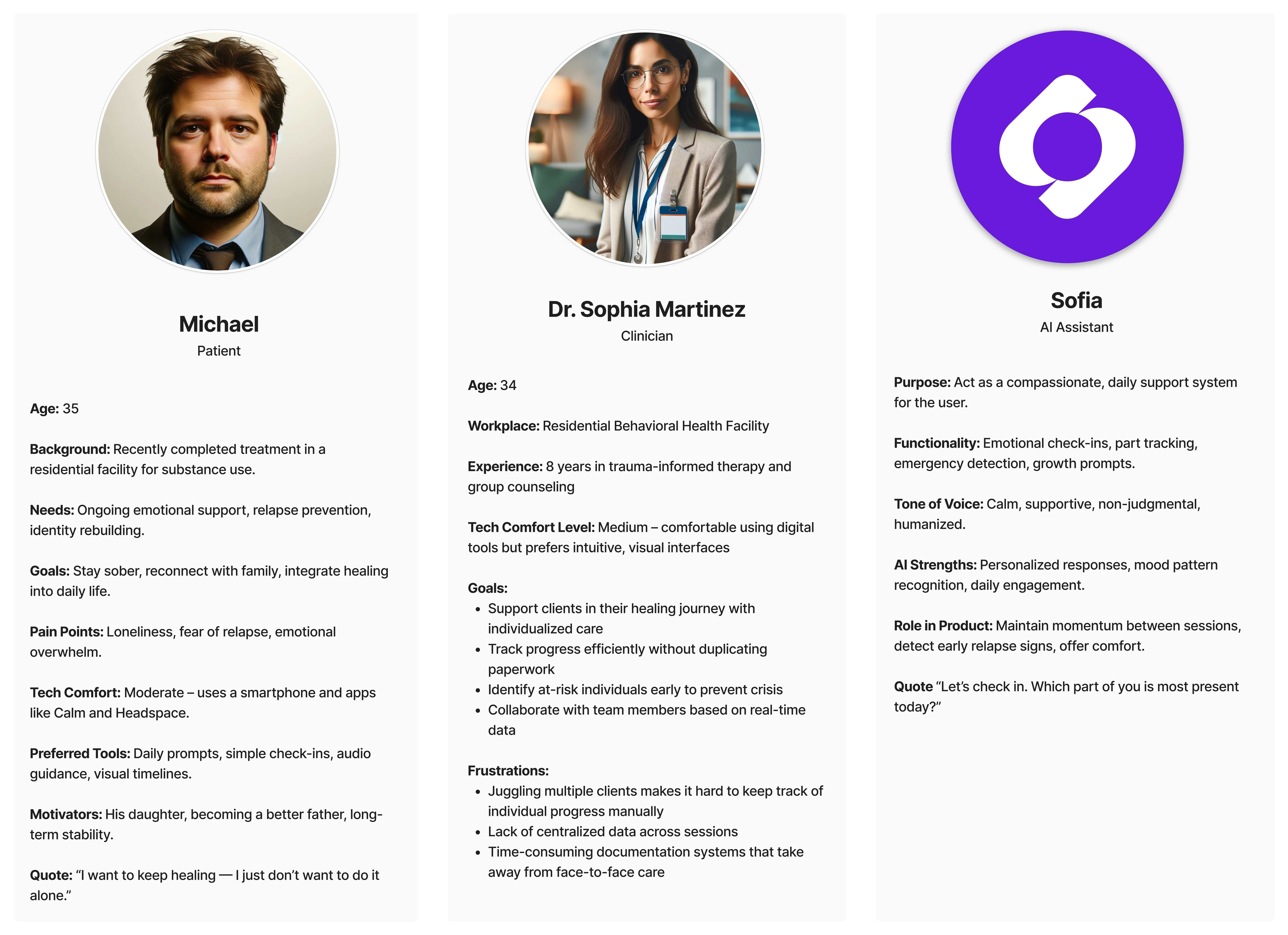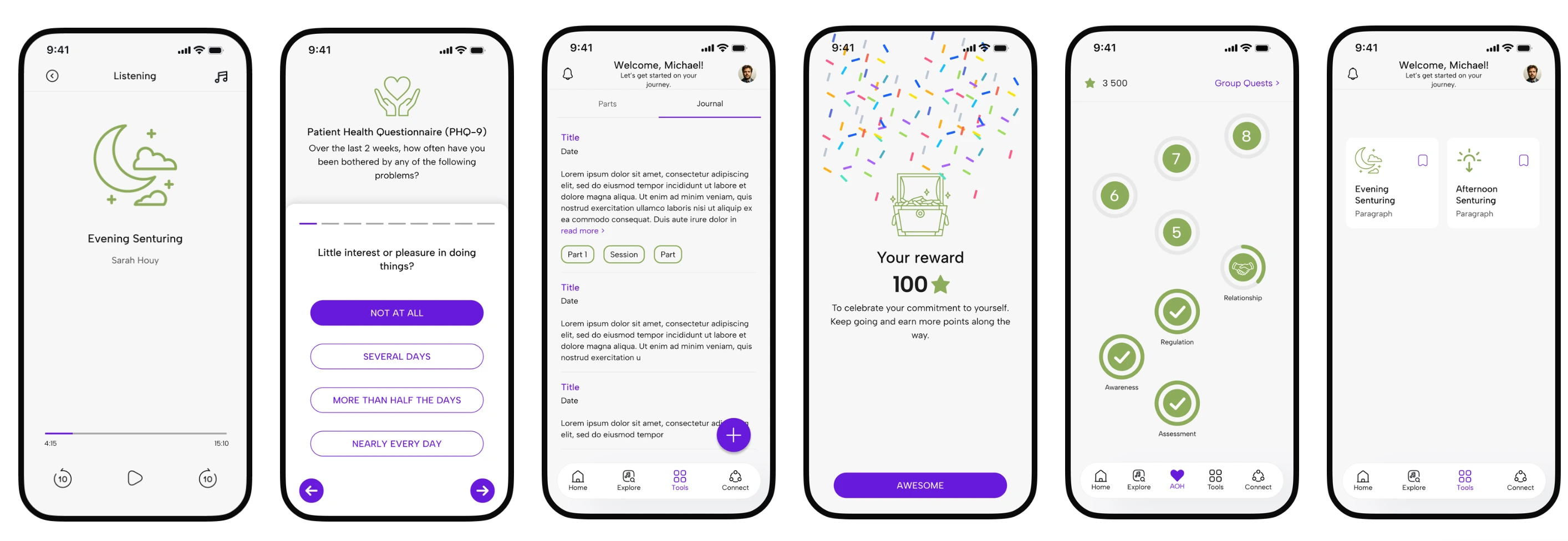 Personalization: Patients see reflections tailored to their own emotional journey. I designed dynamic interfaces that adapt based on user inputs—creating space for real growth.