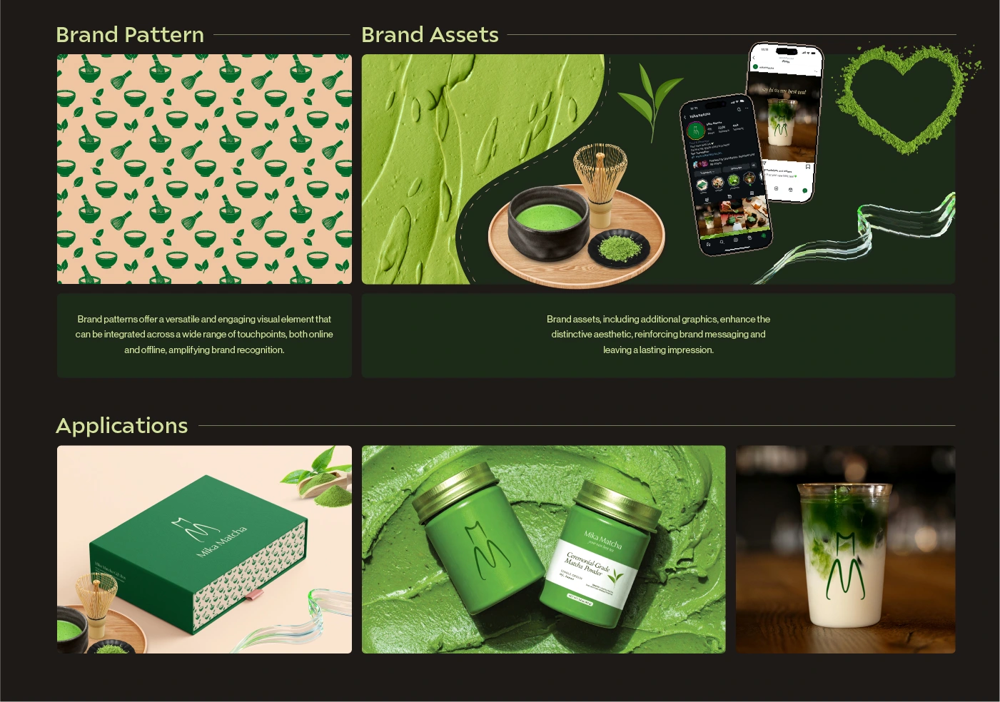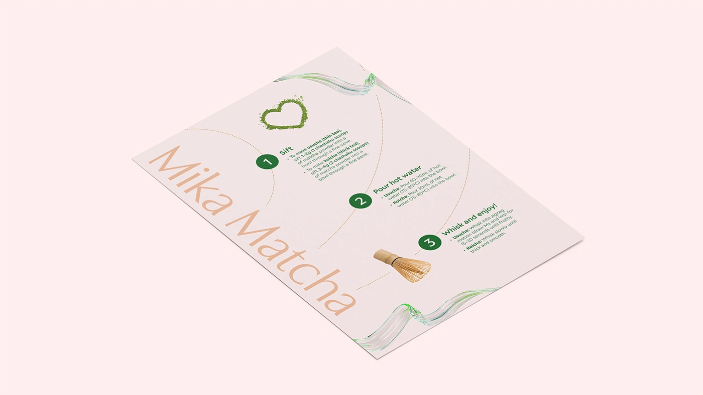 Brand Identity for Mika Matcha, a matcha powder and drink brand. Scope includes logo design, brand collateral, social media templates and brand guidelines.