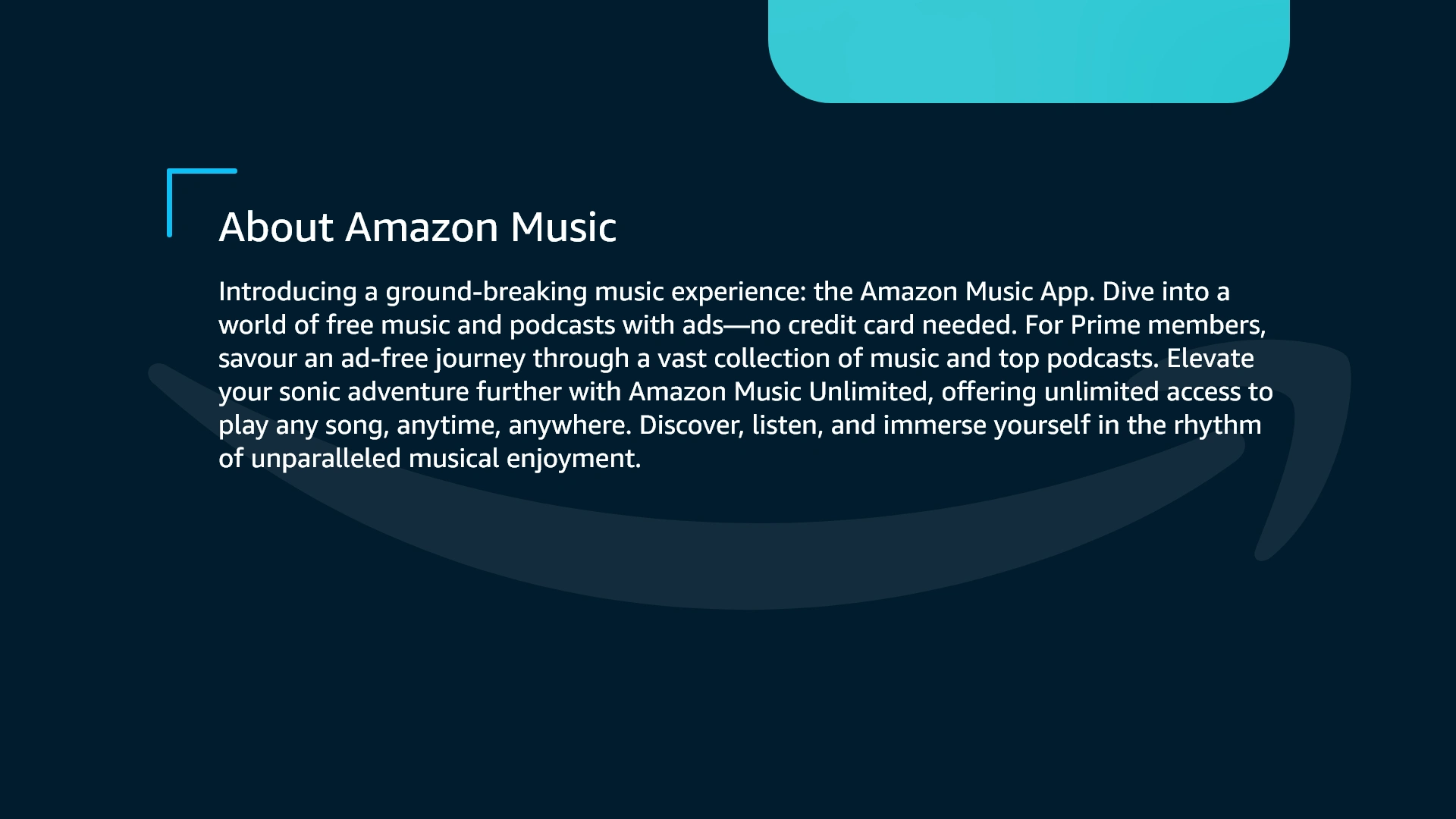 Discover free music & podcasts with the Amazon Music App. Prime members get ad-free tunes, or go Unlimited to play any song, anytime, anywhere.