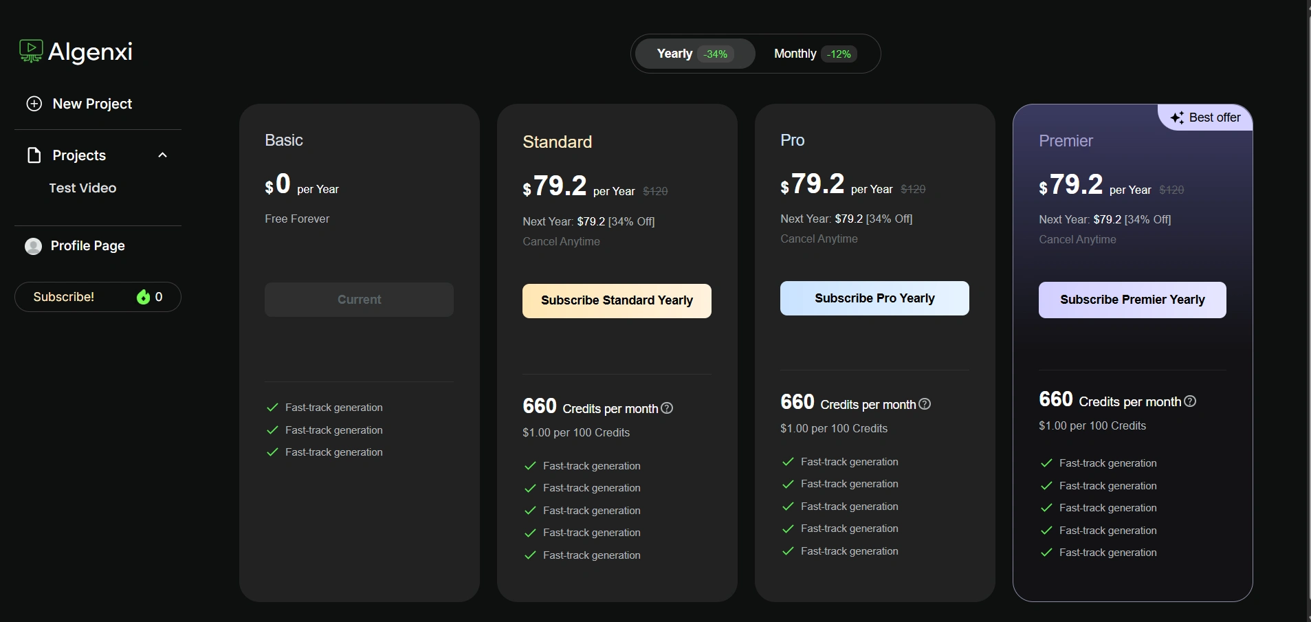 Algenxi is an AI-powered platform that allows users to generate images and videos using AI technology. I worked on the functional design of the application, focusing on building a clean and user-friendly interface. I also developed the subscription and pricing flow, ensuring smooth user onboarding and access control based on plans.