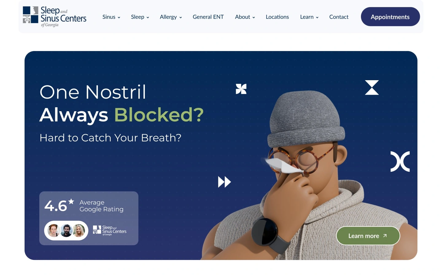 Migration of Sleep & Sinus Centers of Georgia’s website from WordPress to Webflow with full CMS integration.