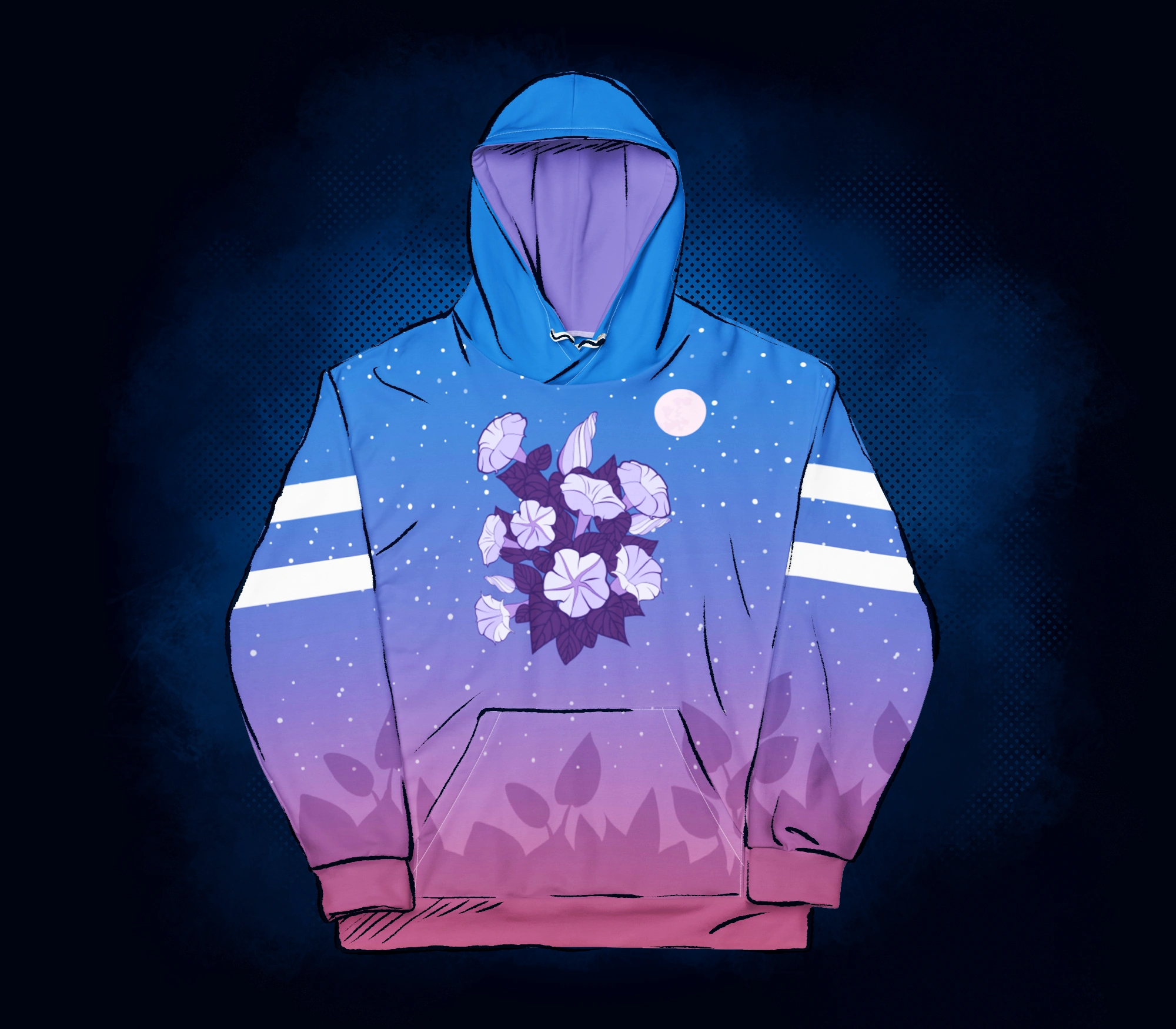 A personal project where I created the perfect hoodie for the cold season, inspired by the delicate moon flowers and the stunning colors of the sunset.