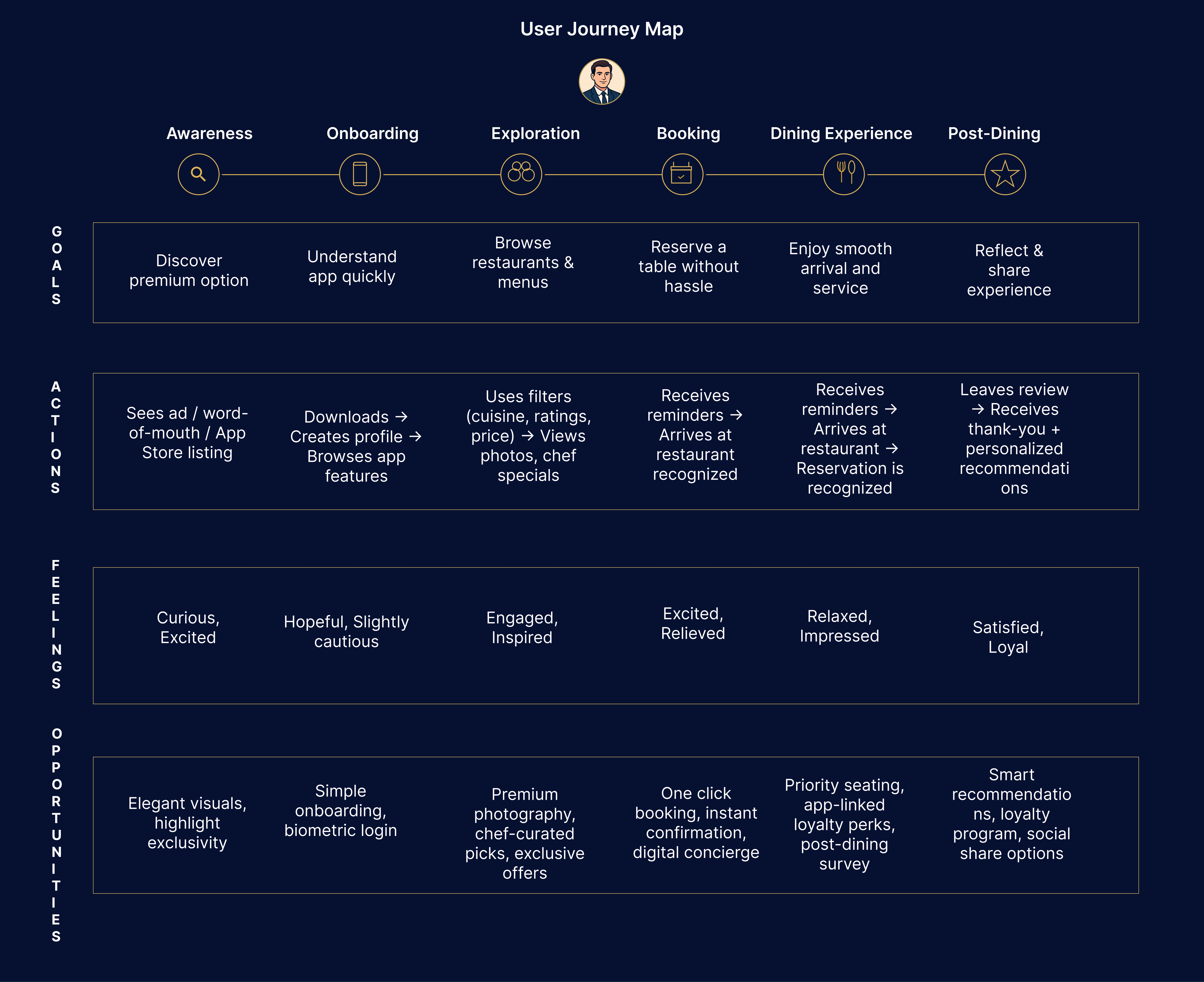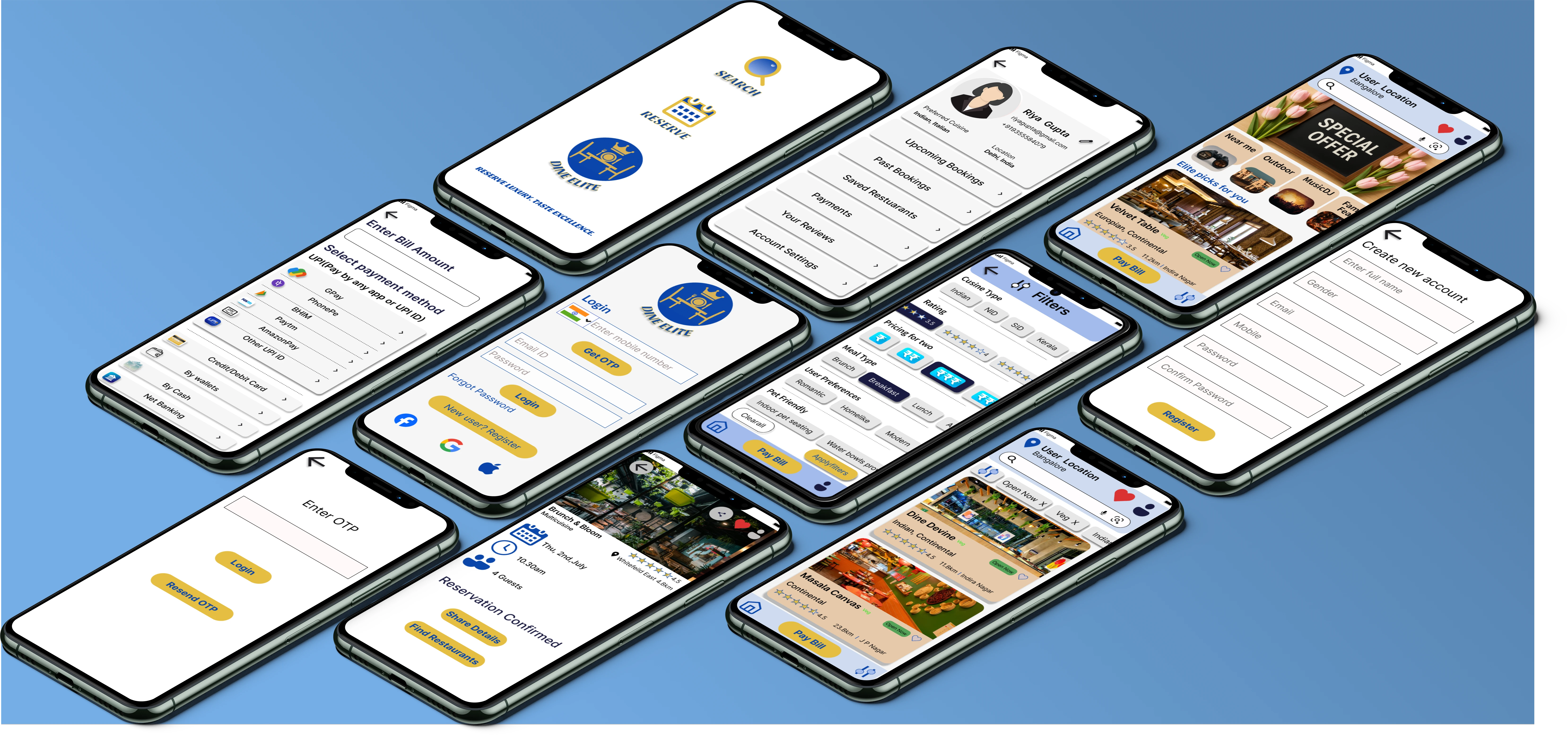 Dine Elite is a fine-dining restaurant booking app designed as part of the Google UX Design Certificate program. The goal was to create a seamless and premium reservation experience for high-end customers. The app emphasizes simplicity, elegance and convenience, enabling users to discover restaurants, book tables, explore menus, and manage reservations effortlessly.