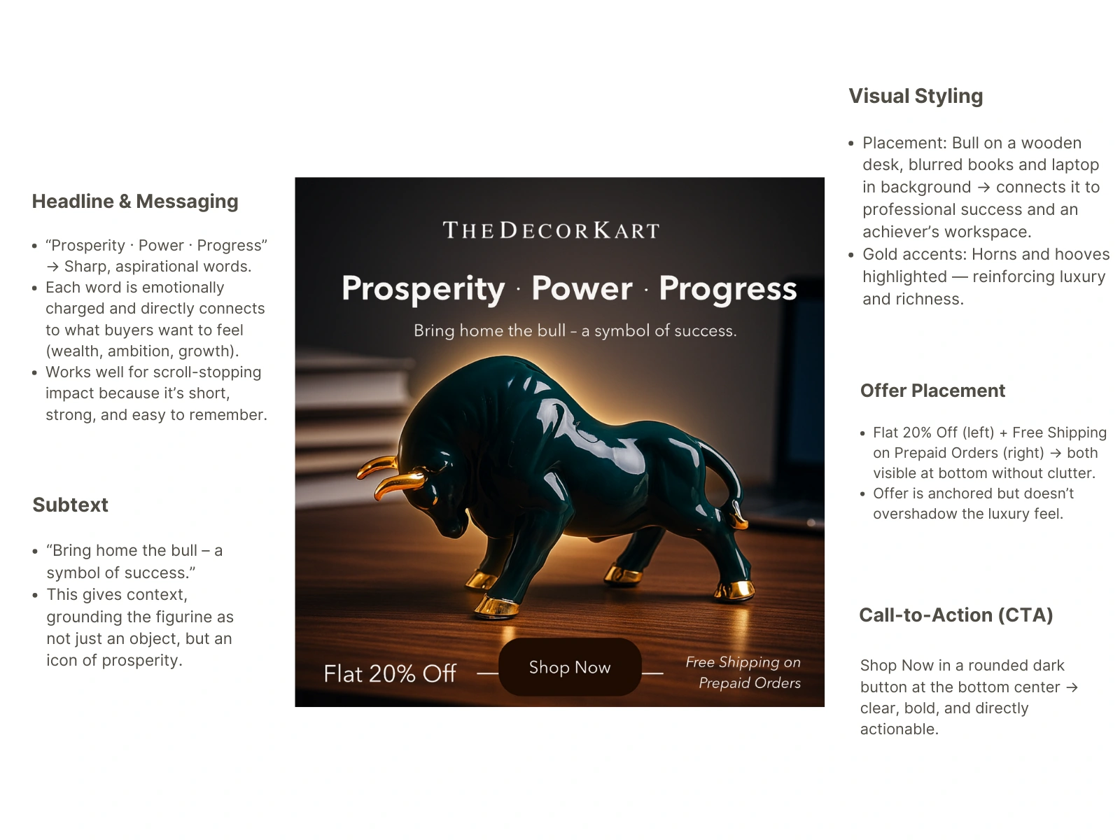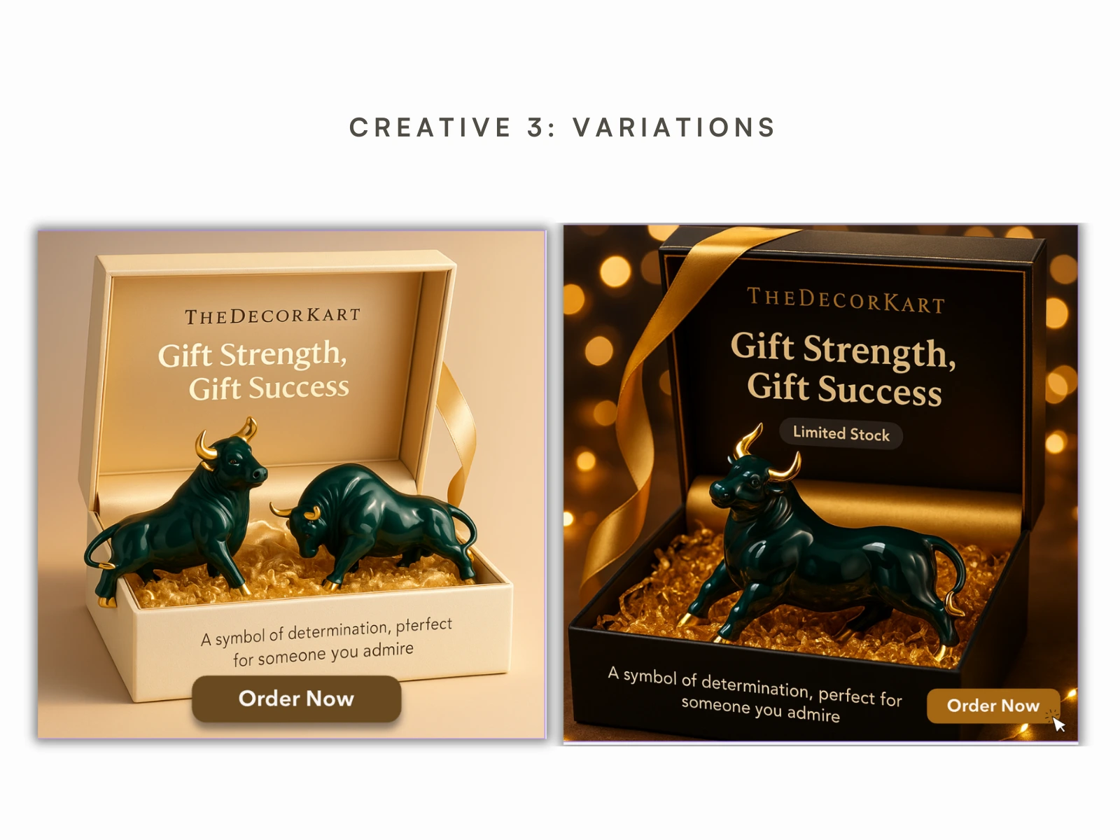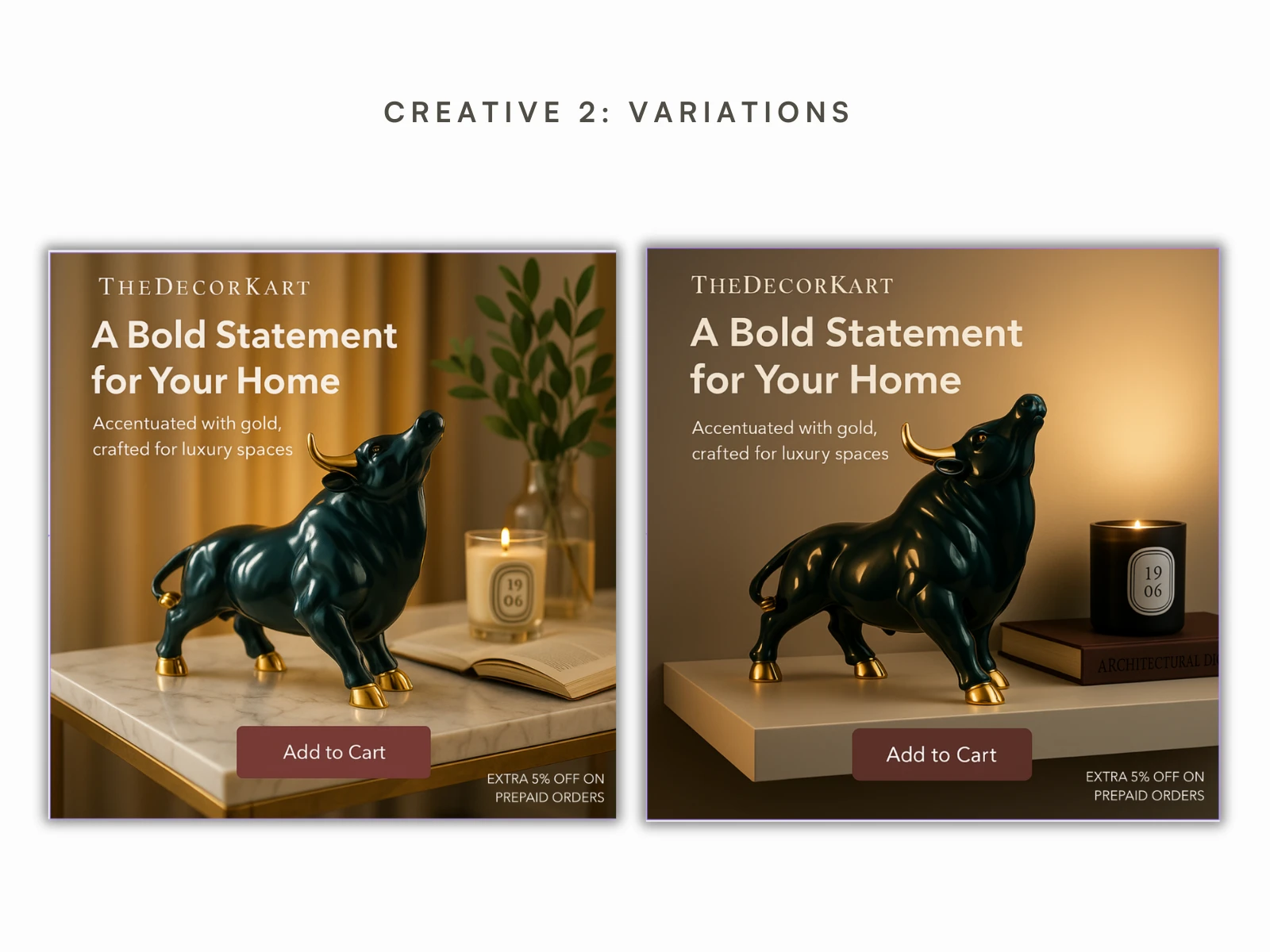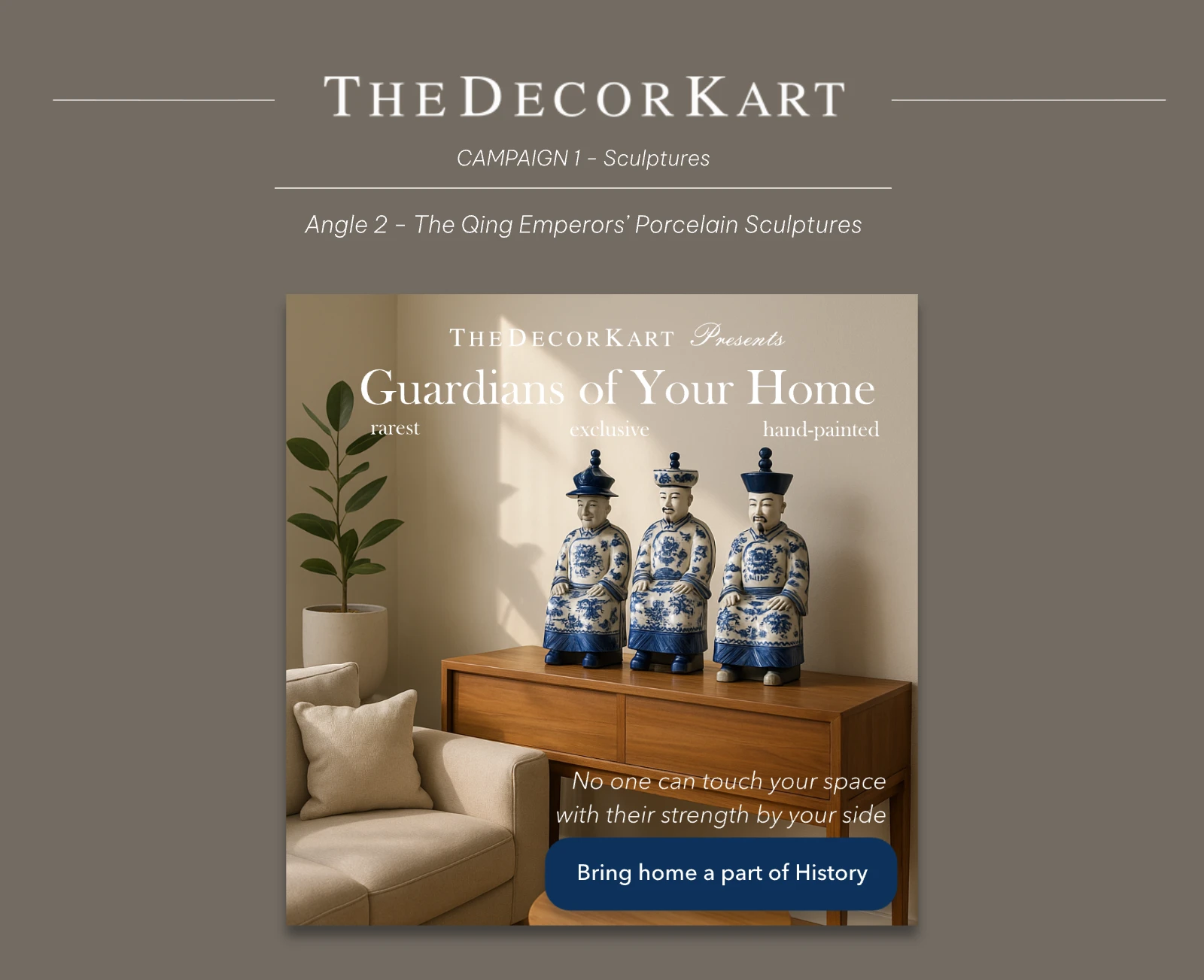 This was how we set the tone for Decorkart’s TOF campaigns: ads that tell stories, products that become symbols, and collections that feel like legacies.