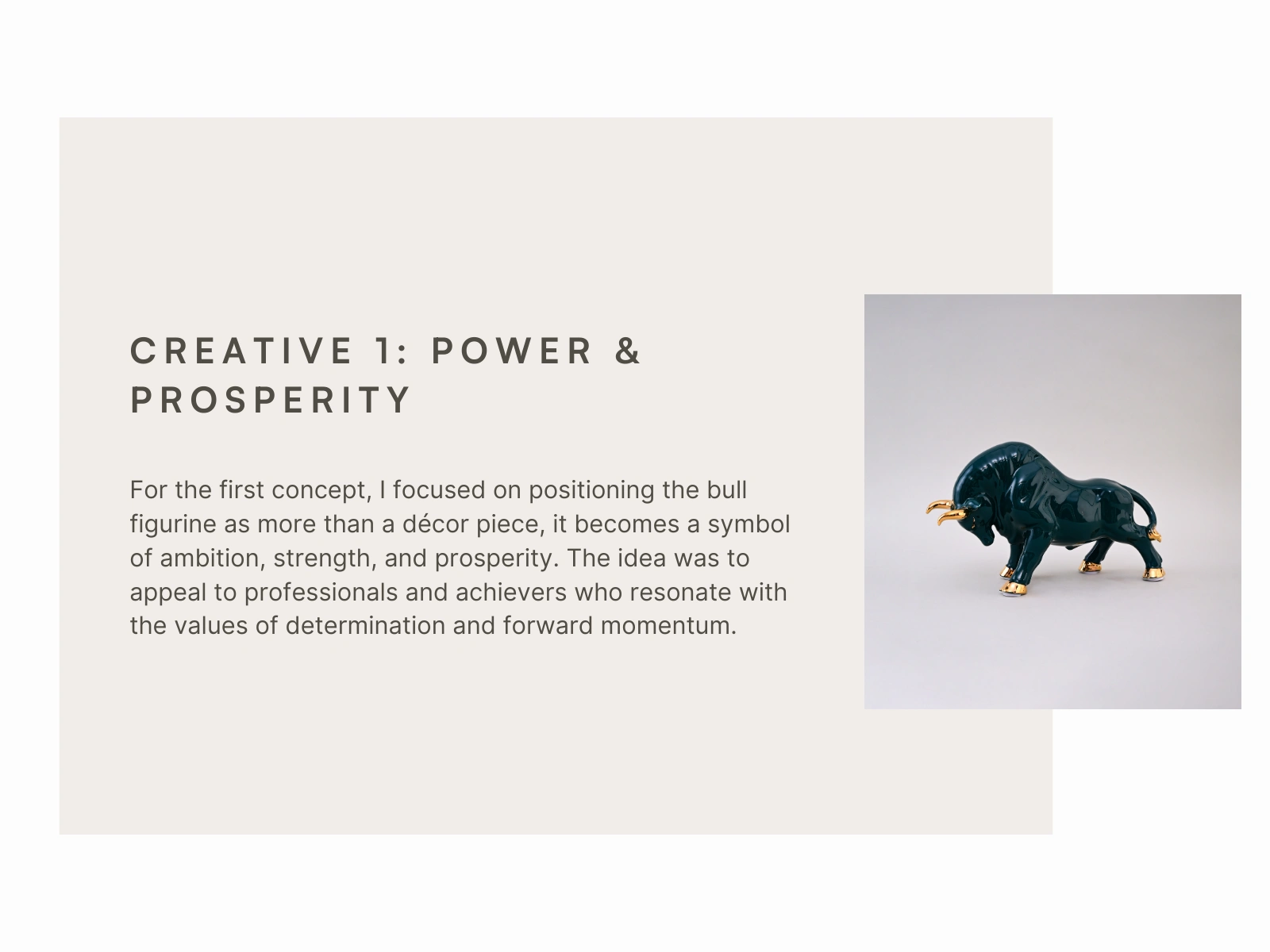 Power & Prosperity — the bull as a symbol of strength and success, a piece that could sit on a desk like a trophy of achievement.
