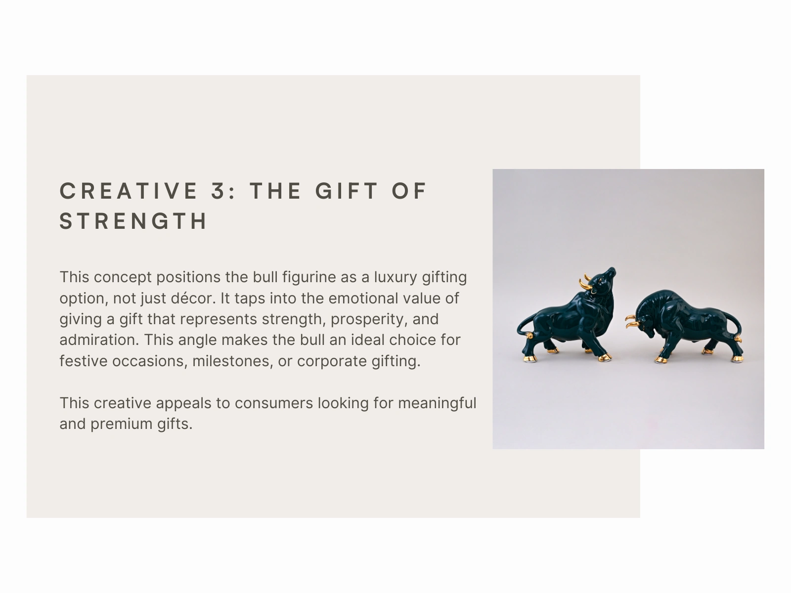 The Gift of Strength — the bull as a meaningful gift, packaged with emotion and exclusivity.