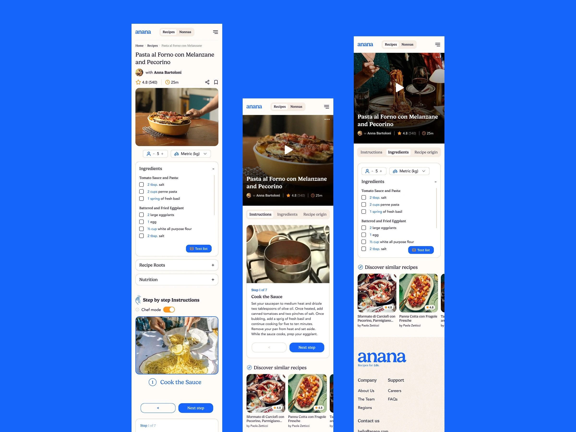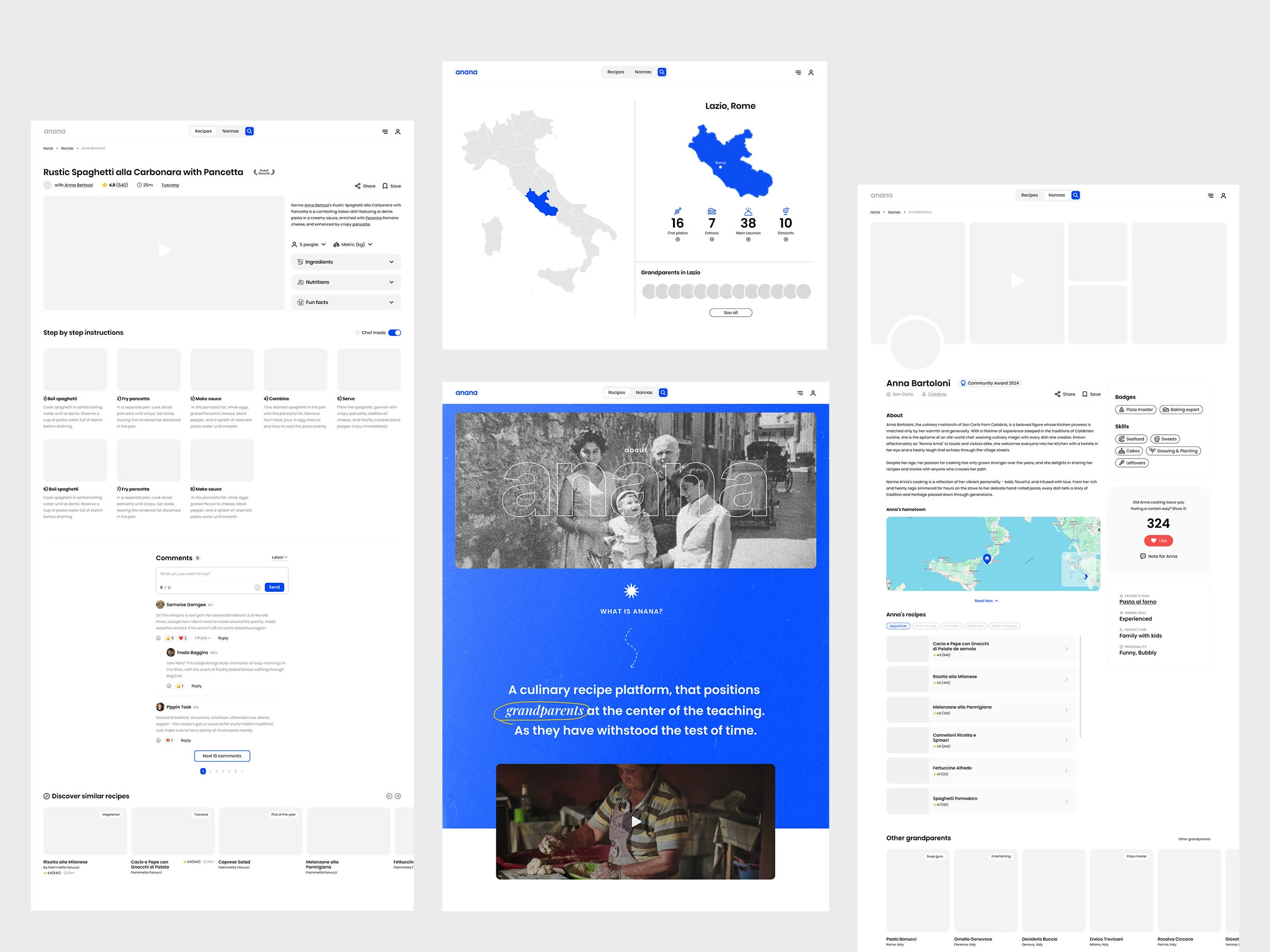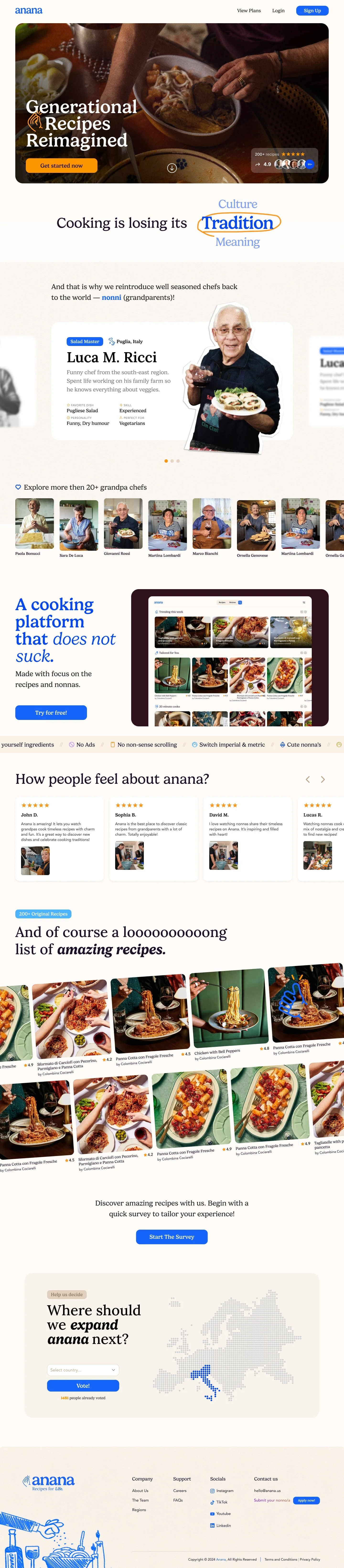Anana is an online cooking platform focused on preserving and sharing authentic Italian recipes taught by nonnas (grandparents). The goal was to translate the warmth and simplicity of home cooking into a digital product that feels calm, human, and easy to use.