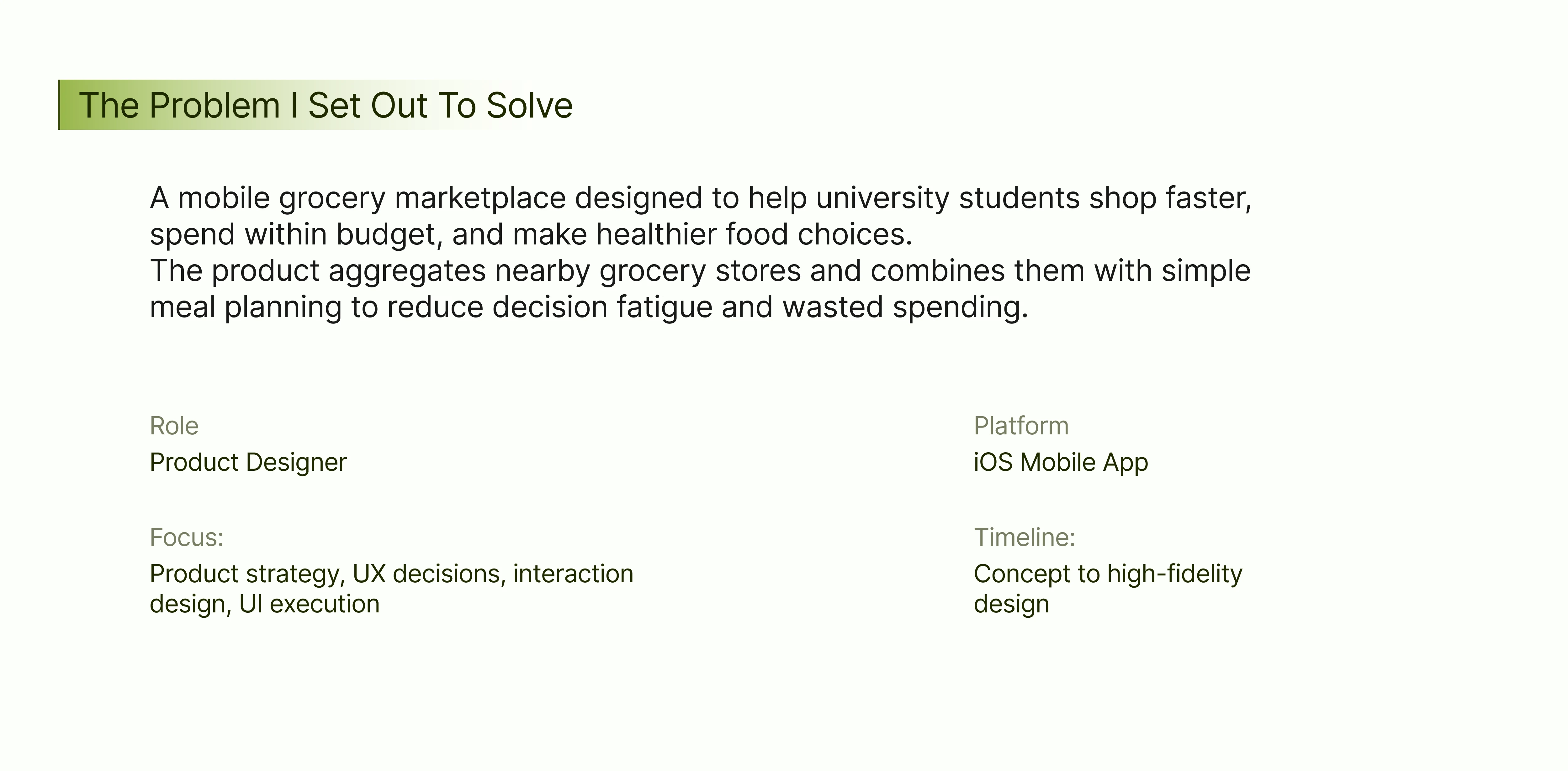 A mobile grocery marketplace designed specifically for students, bringing together grocery stores located near hostels and universities while supporting better food planning and spending habits.