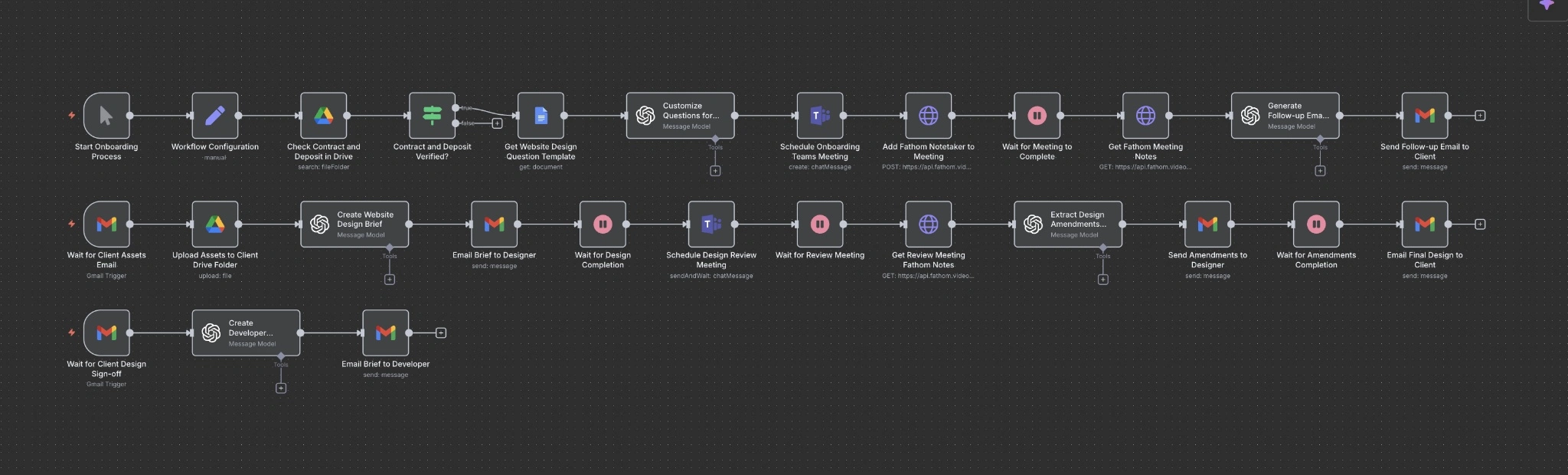 Automated onboarding cut time 60%, reduced revisions 30%, and boosted client satisfaction to 9.3/10 with AI and Teams integrations.