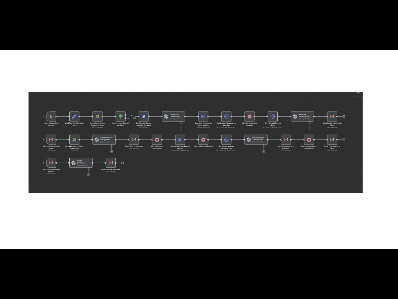 PixelNest Creative’s onboarding was slow and disorganised across emails and folders. Automated flow verifies contract and payment, customises AI questionnaire, schedules Teams call with Fathom notes, and extracts design amendments via AI.
