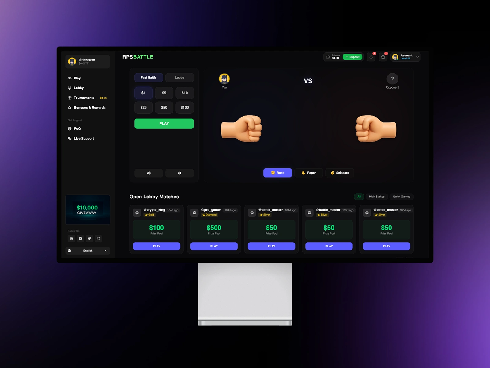 RPS Battle is a blockchain-powered interpretation of the classic Rock-Paper-Scissors game. The project combines simple, fast-paced gameplay with modern Web3 mechanics, creating a fun and engaging competitive experience.