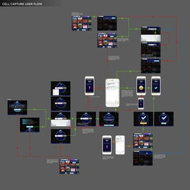 Delivery and documentation were extensive. After final sign-off on the designs, I performed a simultaneous cut-up for deployment on iPad, iPhone, web, and Android. After this, I provided screenshots of every screen (which had font sizes shown, along with pixel measurements of elements to be drawn with code), a full visual flowchart of how it all connected, animatics for the few animated elements, documentation about localisation, and notes on expanding elements.