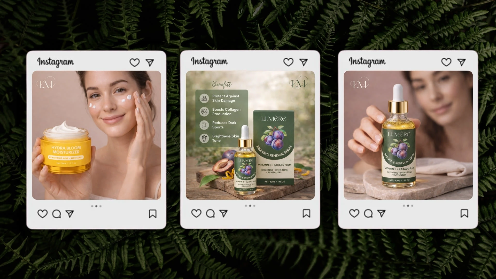 Complete brand identity for clean luxury cosmetics brand. Botanical minimalism meets sustainable design. Logo system, packaging, and social strategy included.