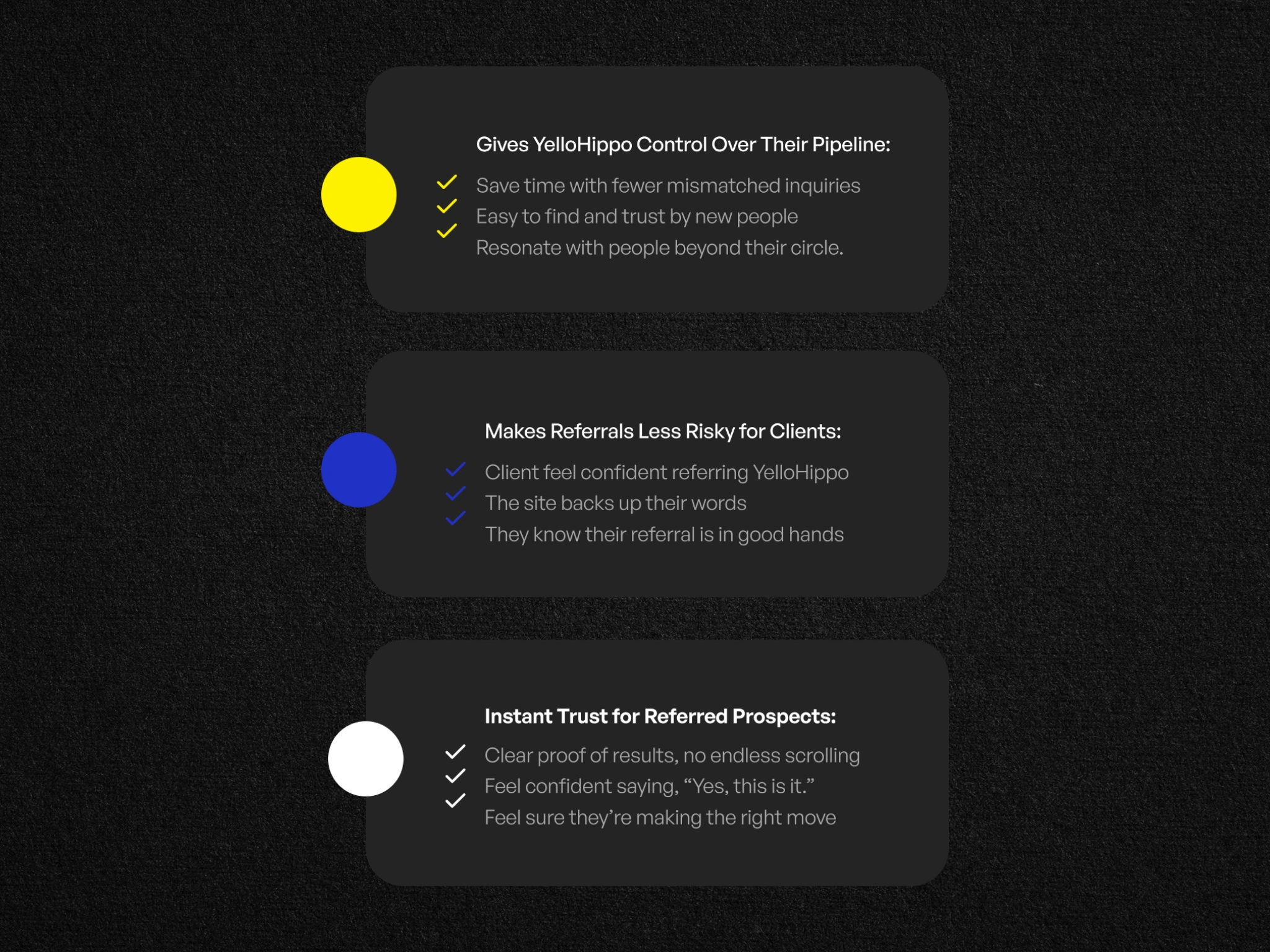 YelloHippo, their clients who refer them, and the new people being referred. A strong website is the missing link that solves the challenges each one faces.