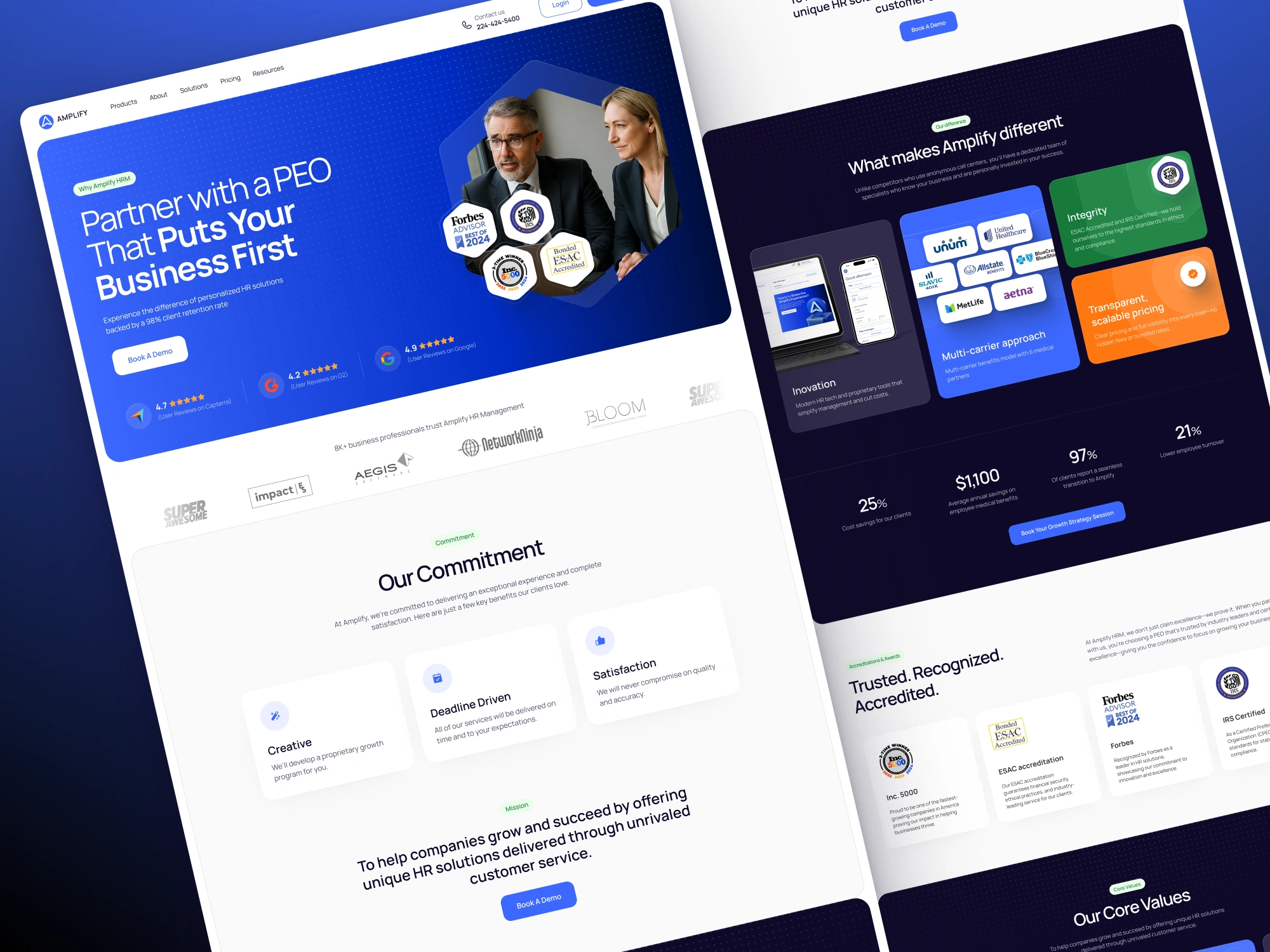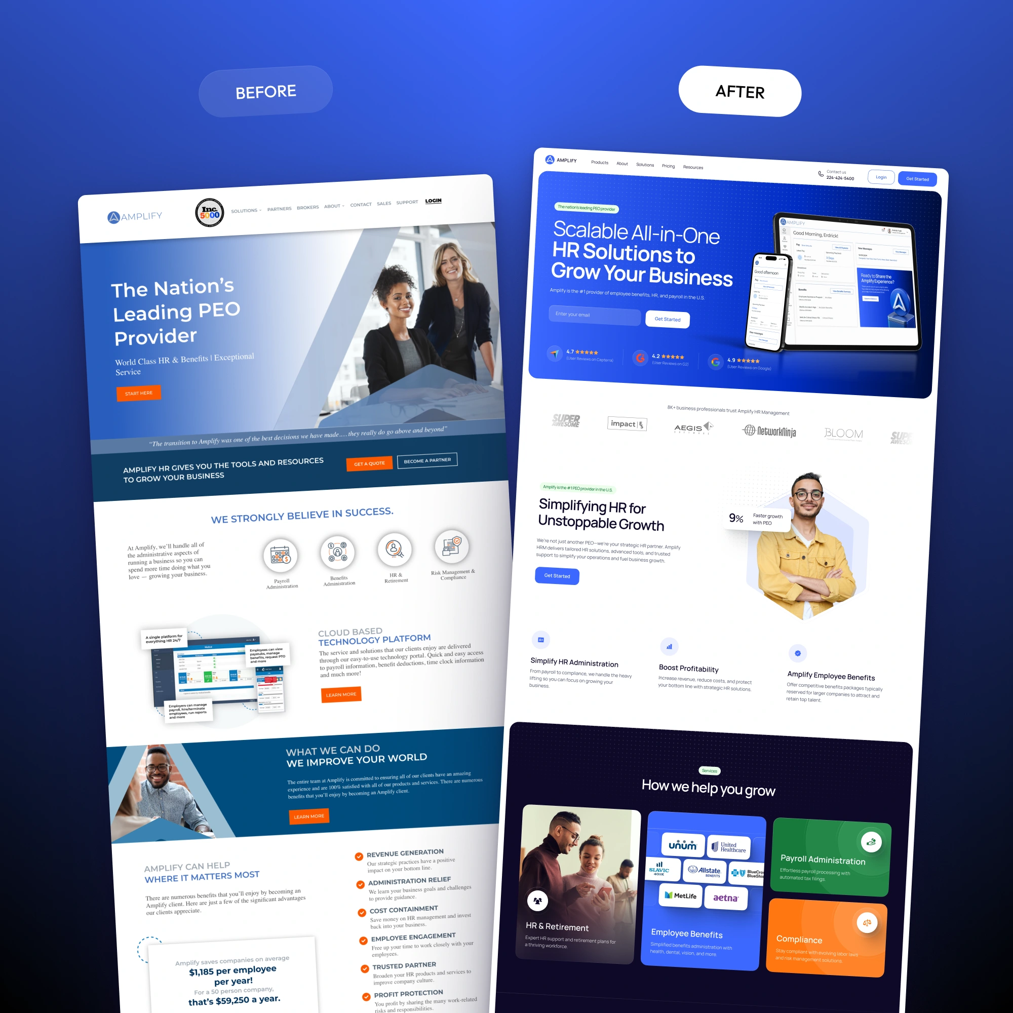 A modern website redesign for a PEO – clarifying complex services, building trust with partners, and helping sales convert faster through clean UX and strategy.