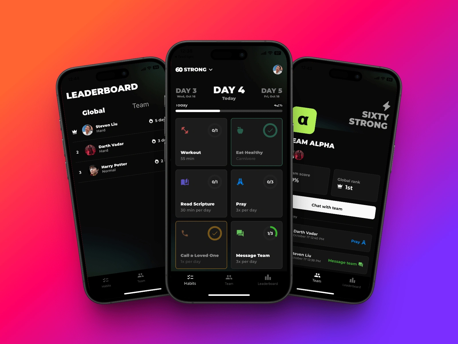 Sixty Strong is a 60-day habit-building app combining fitness, faith, and community through daily practices and team-based accountability. It features personalised challenges and progress tracking for holistic growth. By integrating physical workouts, spiritual habits, and group encouragement, the app helps users build lasting routines and strengthen their overall wellbeing.