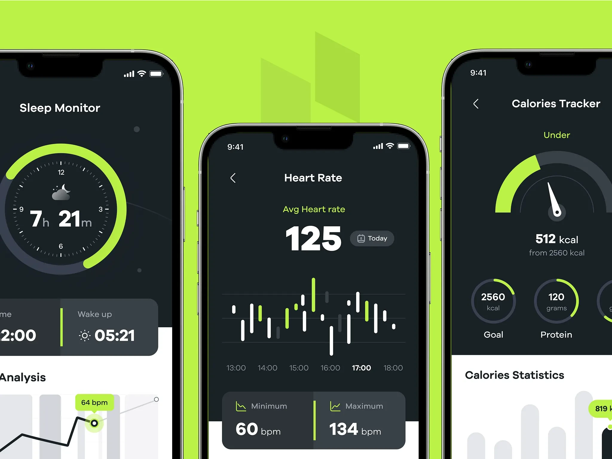 The project included mobile and web dashboards covering workouts, sleep, calories, steps, heart rate, and more — all optimized for both light and dark modes.