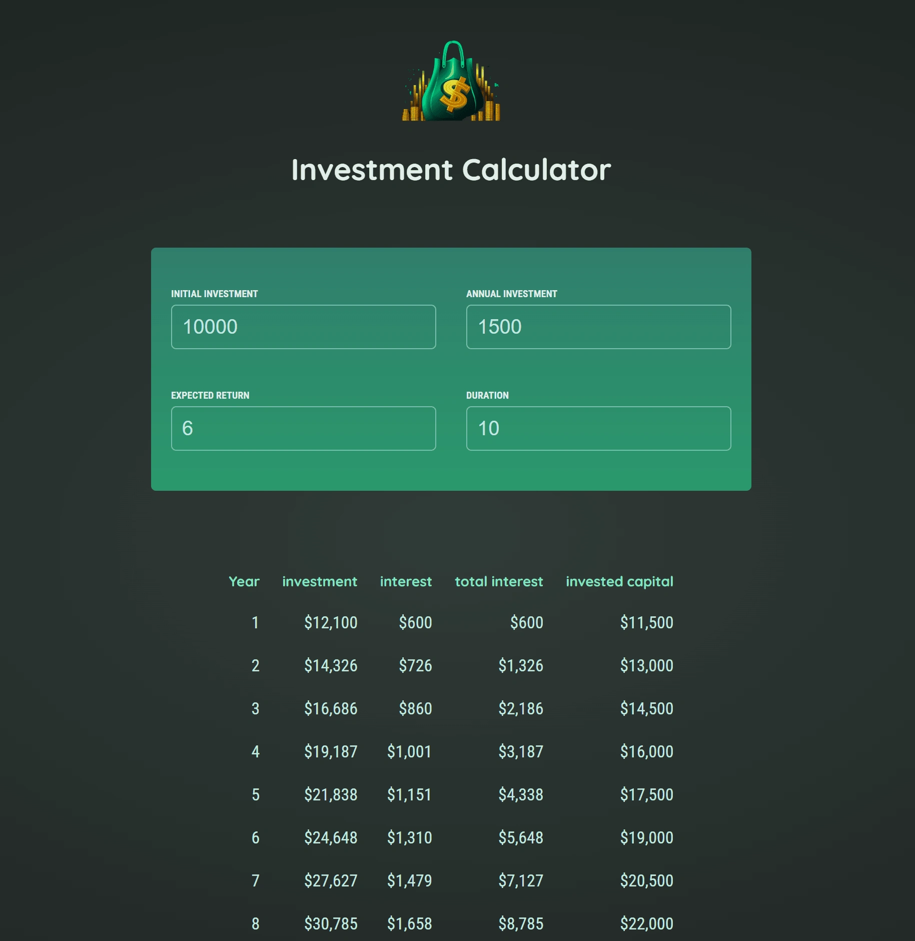 an Investment calculator built using react, and tailwing, that generates a table based on the info entererd.