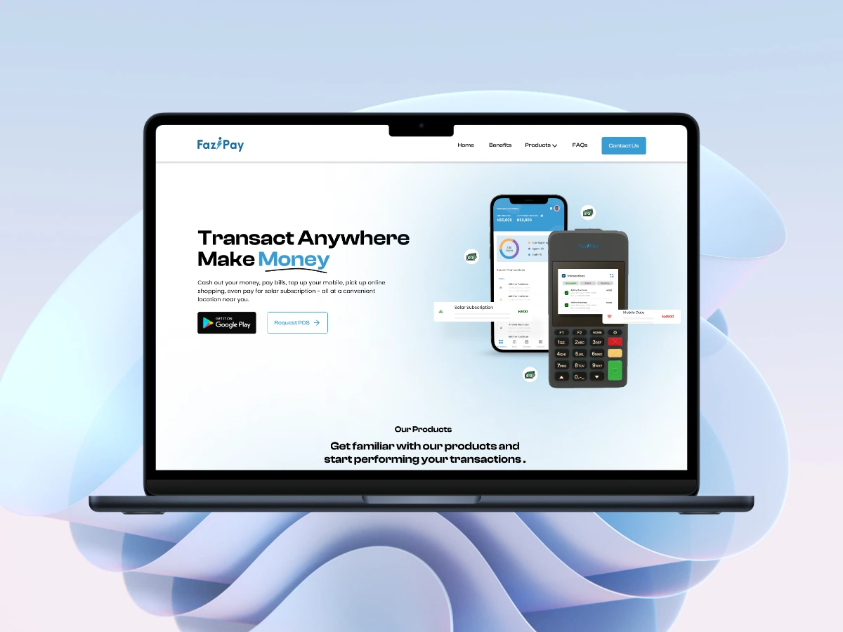Fazipay, a product of Infibranches, is designed to aid last-mile services through an active network of agents. The previous landing page failed to adequately convey the breadth of services provided by the company and was outdated. My task was to collaborate with the product manager to review and redesign the website, ensuring it accurately reflects the company's mission, services, and user needs.