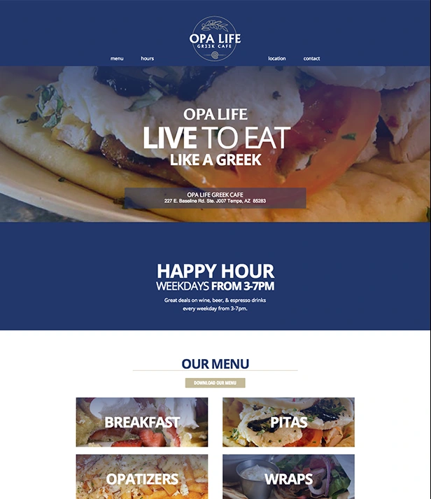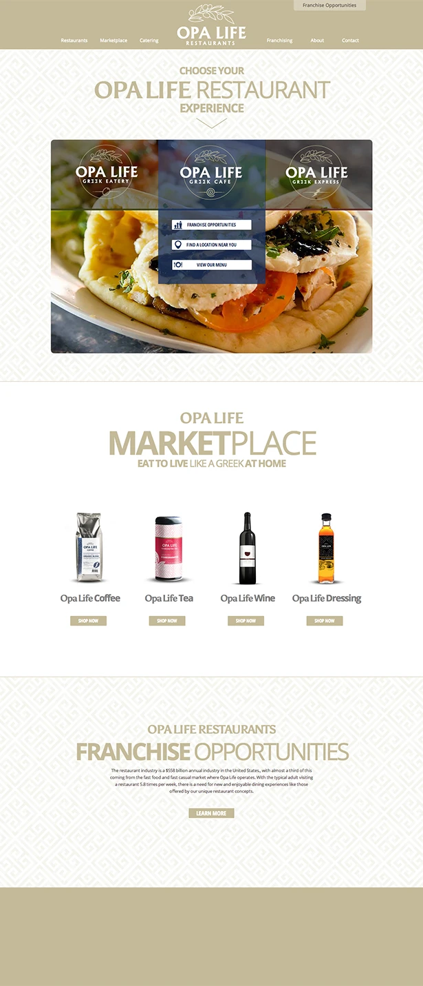 Led full rebrand of Opa Life Greek Restaurants, including new name, logo, menus, interiors, packaging, and marketing for stronger regional growth.