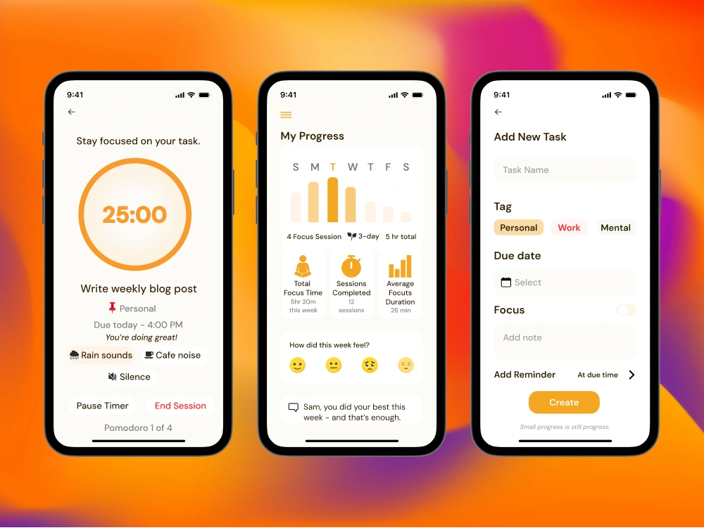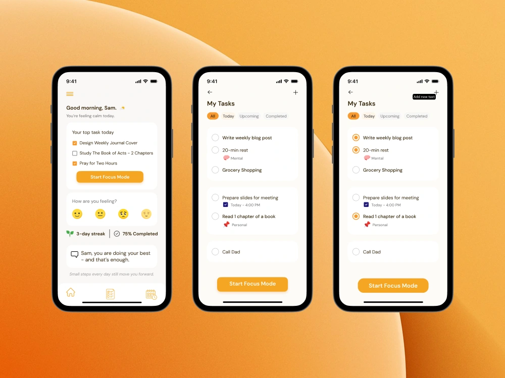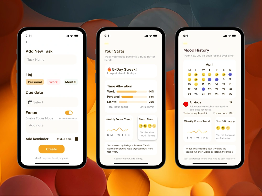 A calm-focused task management app built to help users stay productive without losing peace of mind.