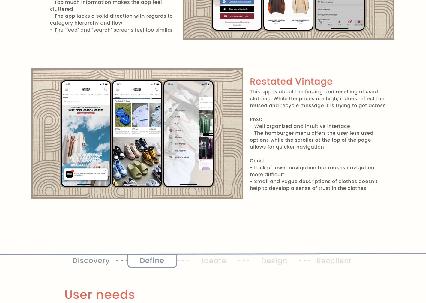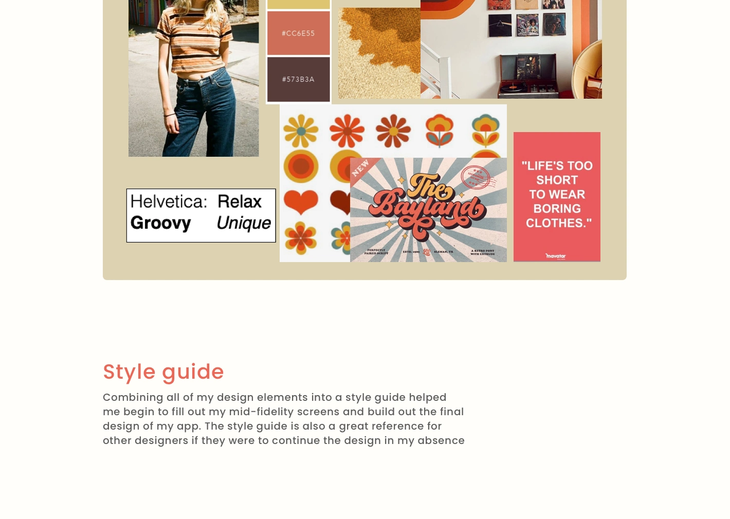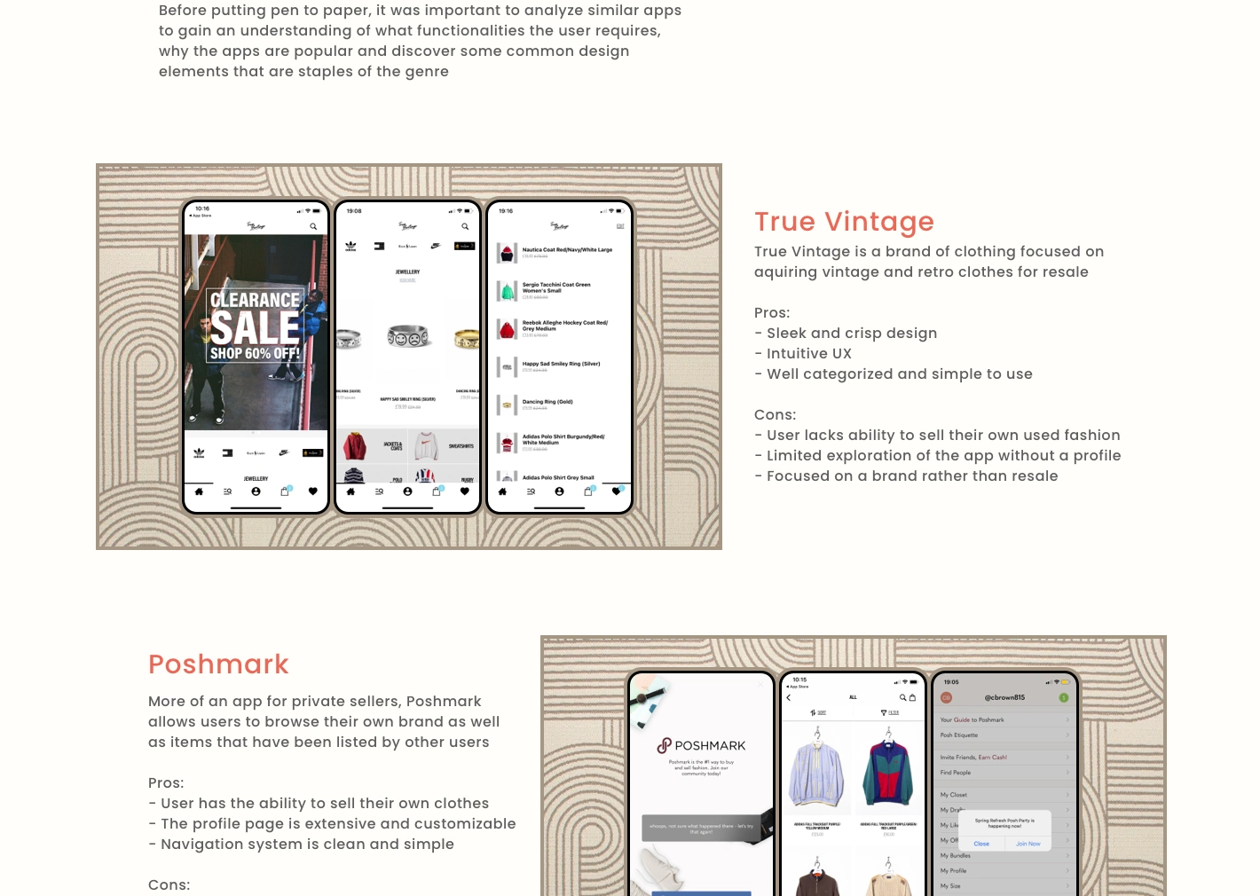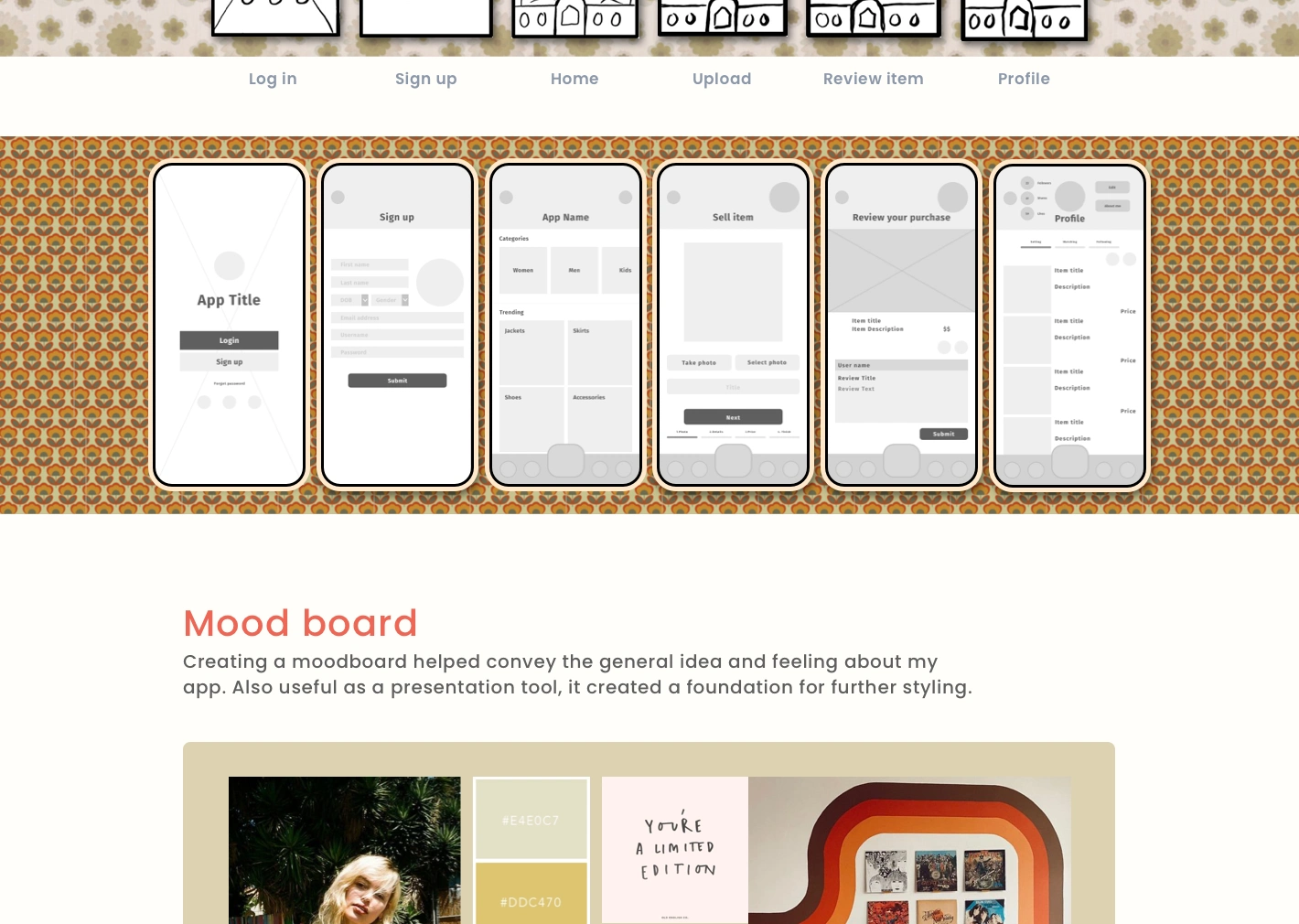 Clothing app for a vintage store showcasing simple UX design principles, helping users navigate it's elements intuitively.