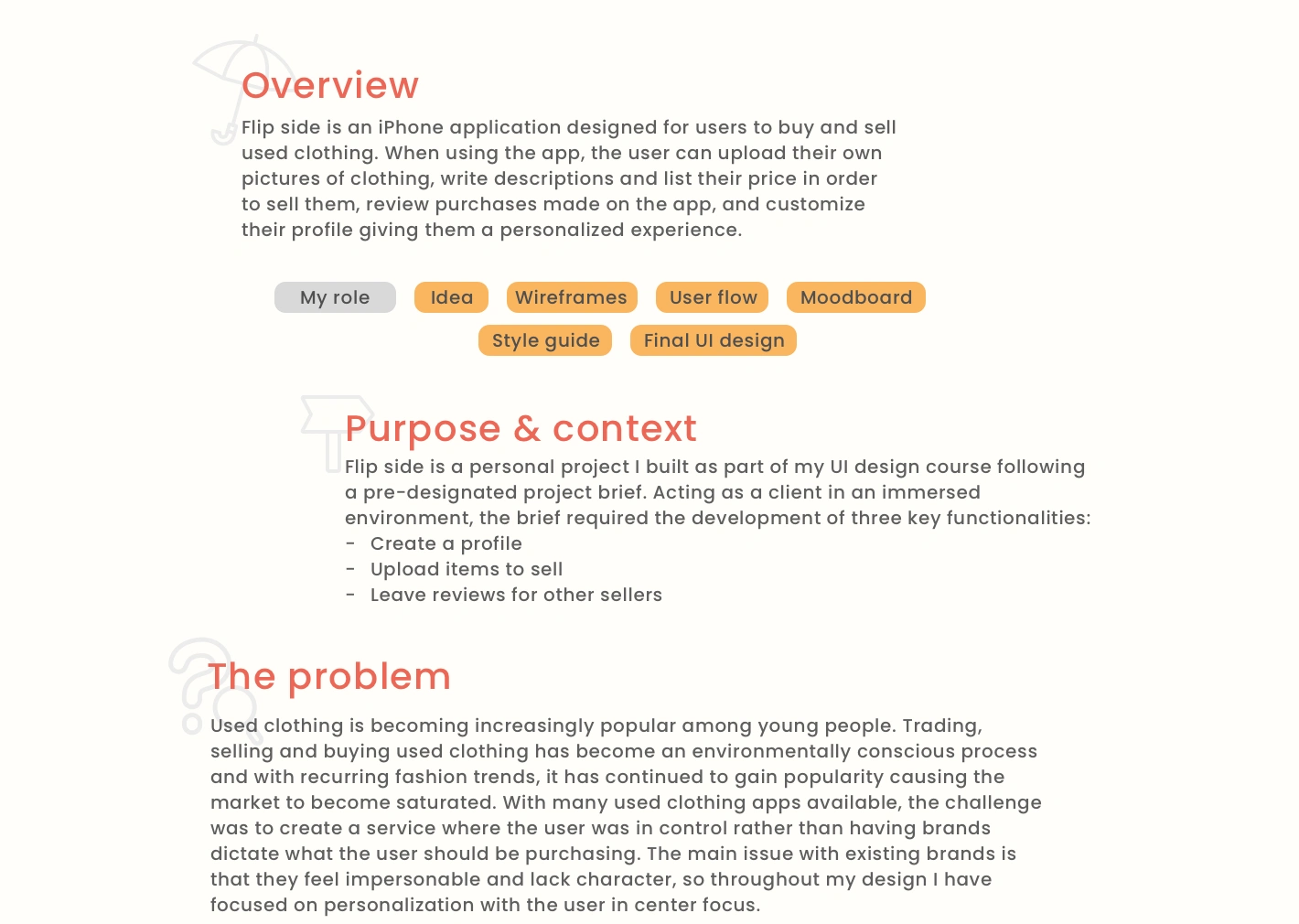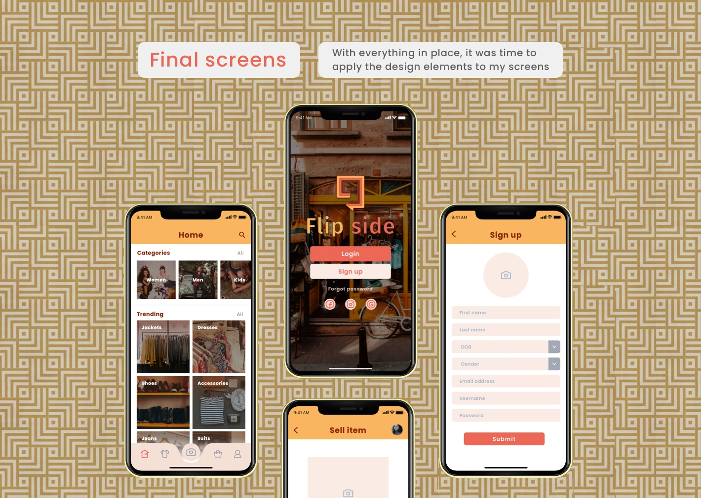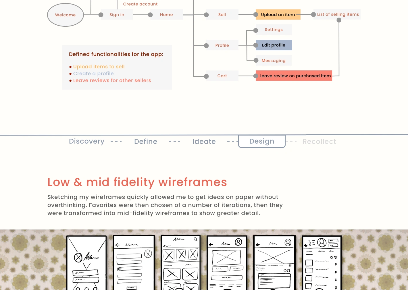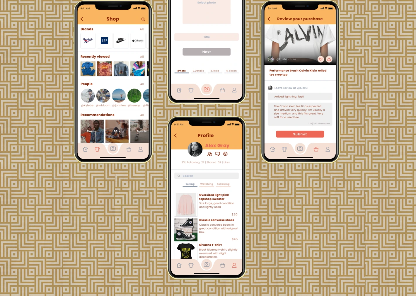 Clothing app for a vintage store showcasing simple UX design principles, helping users navigate it's elements intuitively.
