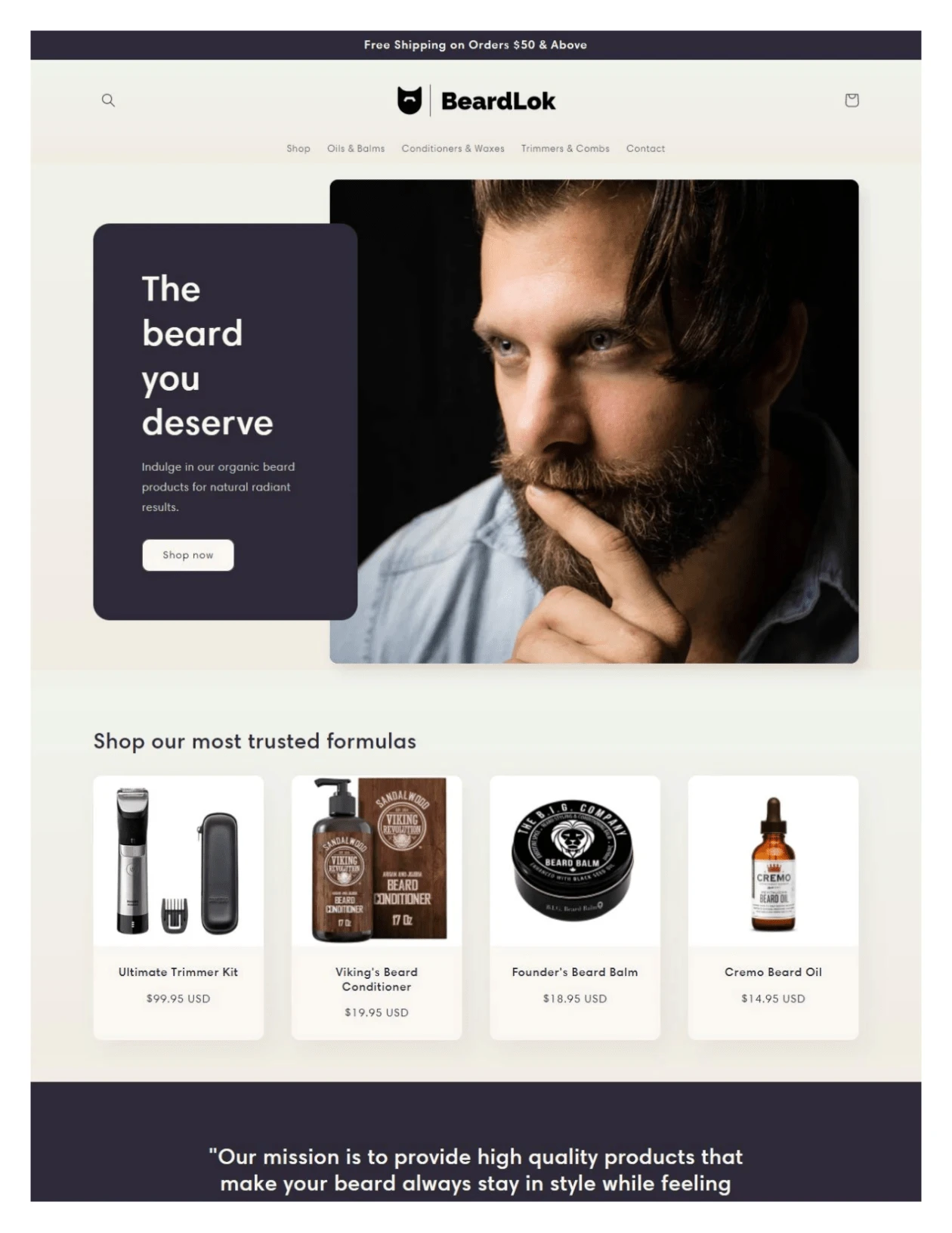 Beardlok is a mockup beard conditioning brand that represents my design skills with eCommerce brands in the beauty niche.