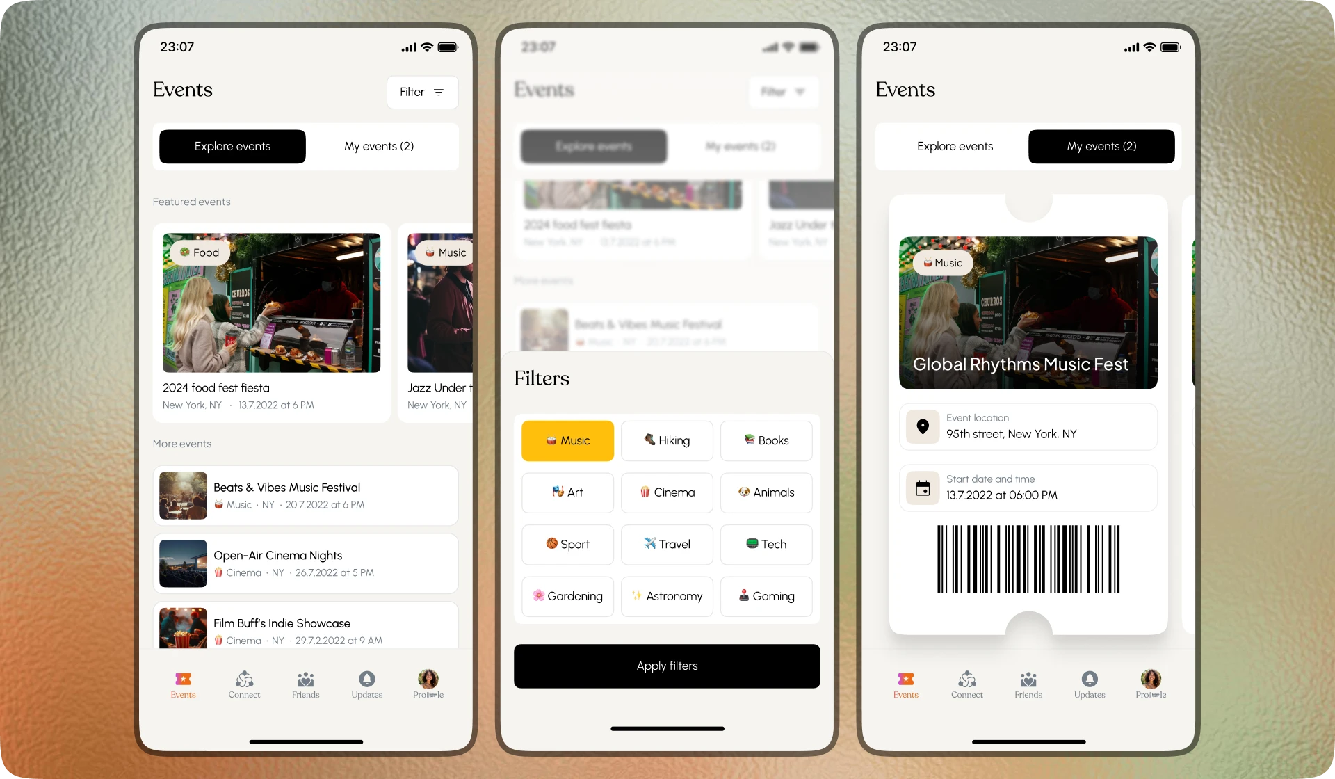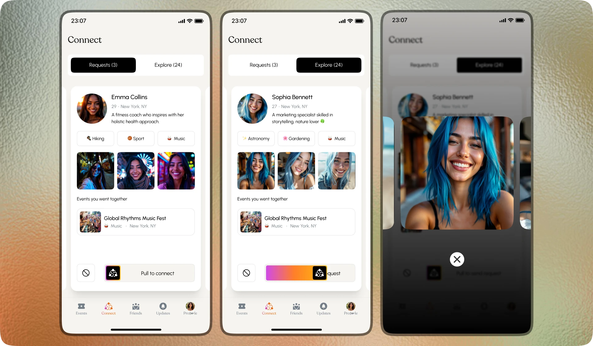 A complete UX overhaul that increased event attendance by 33% and user engagement by 48% for a friend match-making platform.