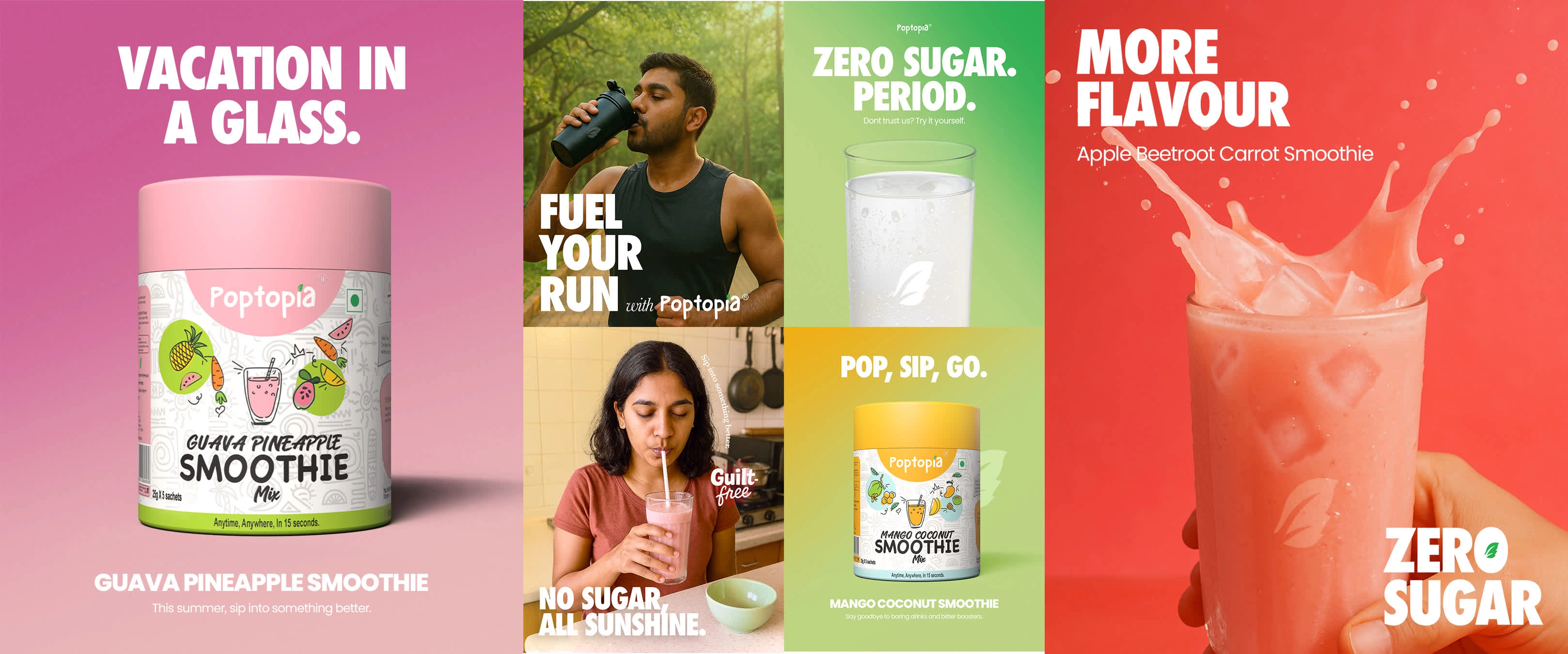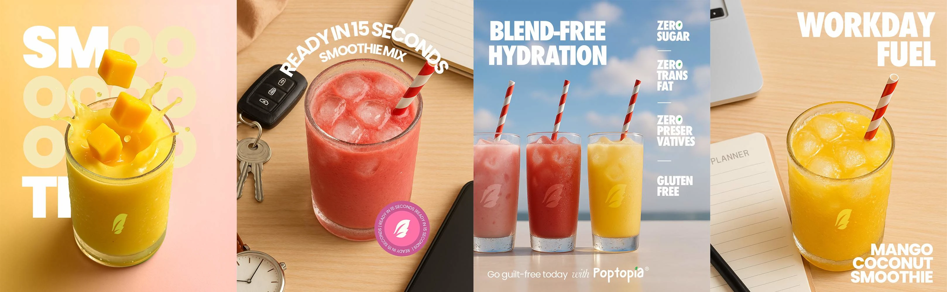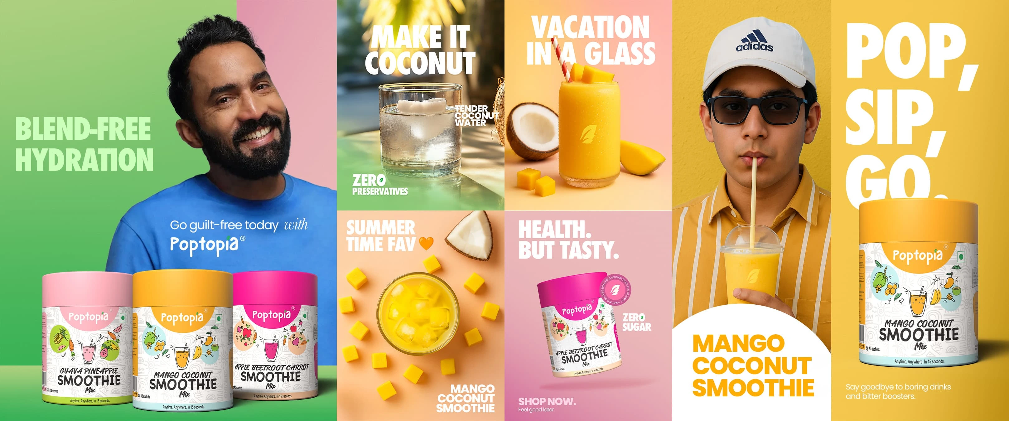 Poptopia is an instant hydration brand that blends the goodness of real fruit with the ease of ready-to-mix sachets. From tropical smoothies to refreshing coconut water, every Poptopia mix is made to keep you energized, refreshed, and always on-the-go. No blending, no mess—just add water.