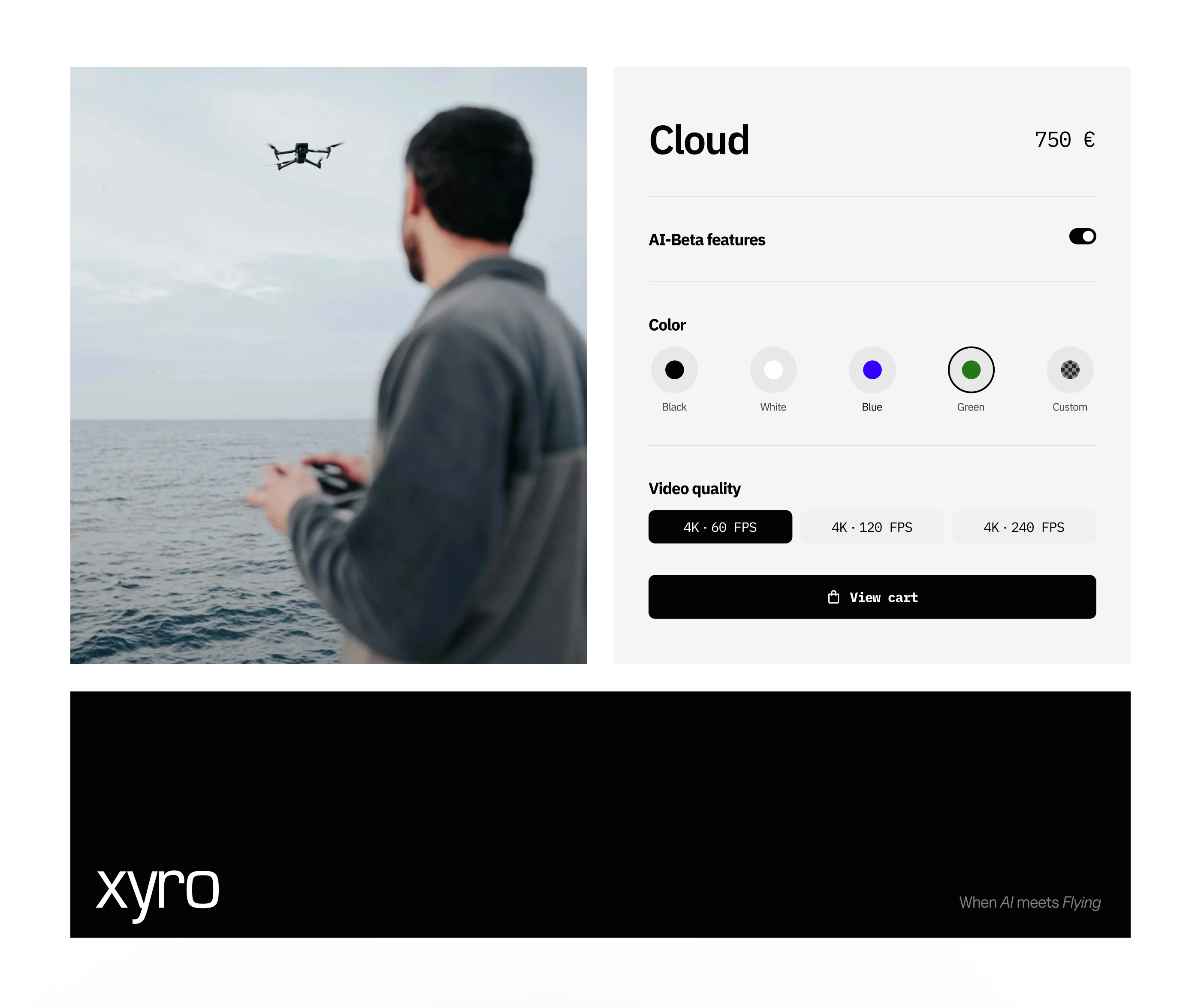 Unleash your passion with the Xyro, where drone shopping meets futuristic design. This intuitive platform transforms the way you explore and purchase drones, offering an inspiring and seamless experience. From browsing cutting-edge models to effortless checkout, every touchpoint is crafted to empower your journey into the skies.