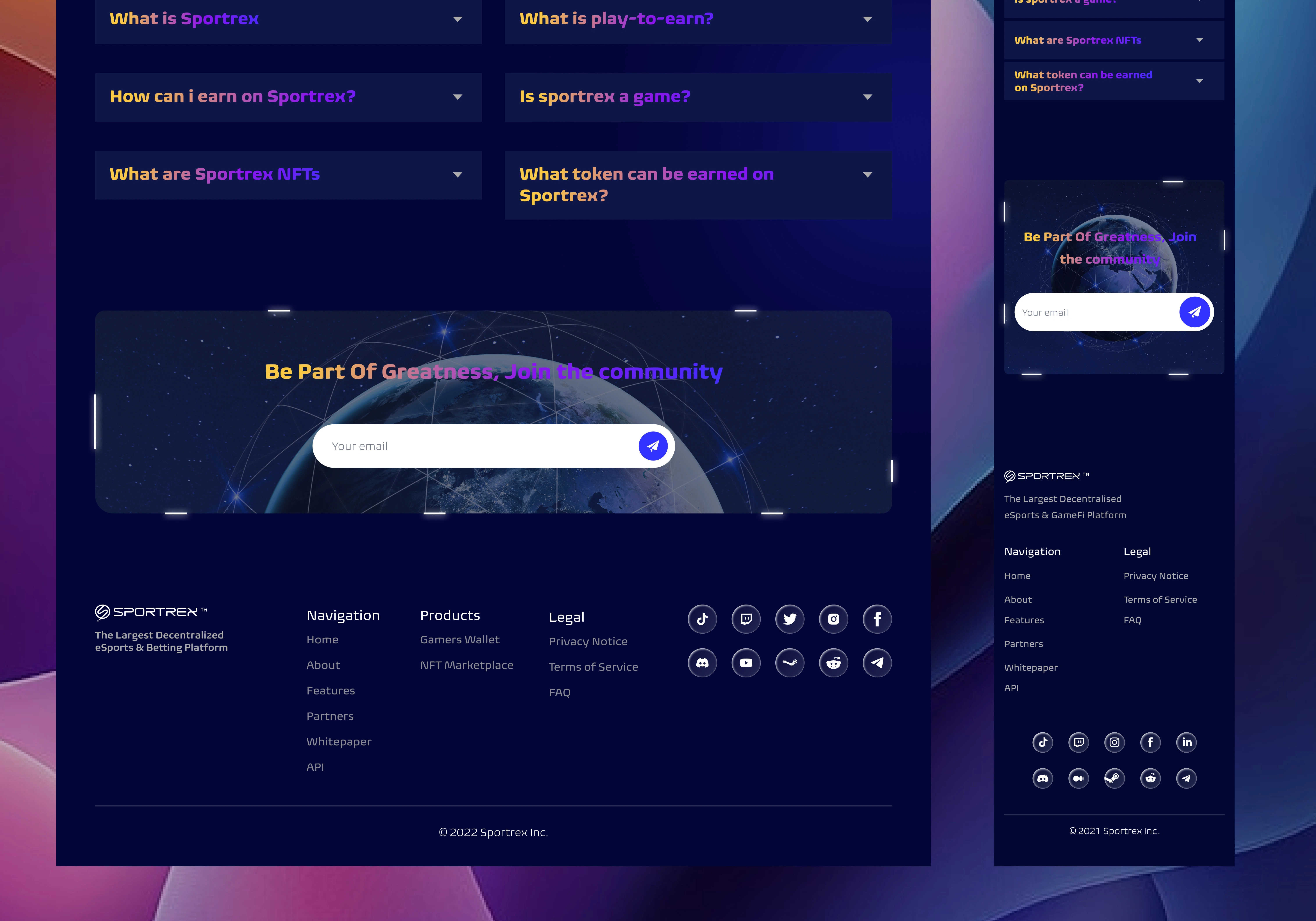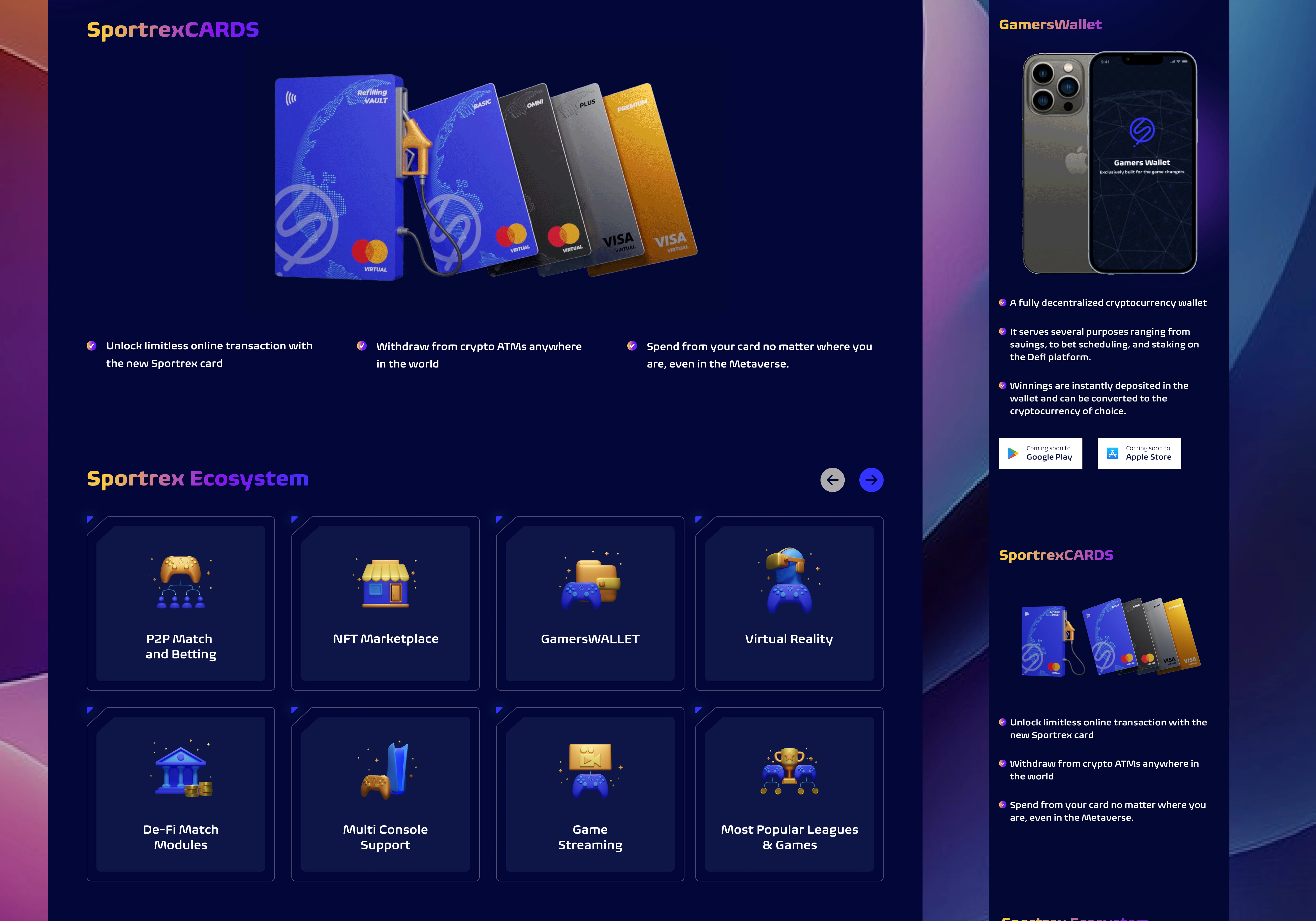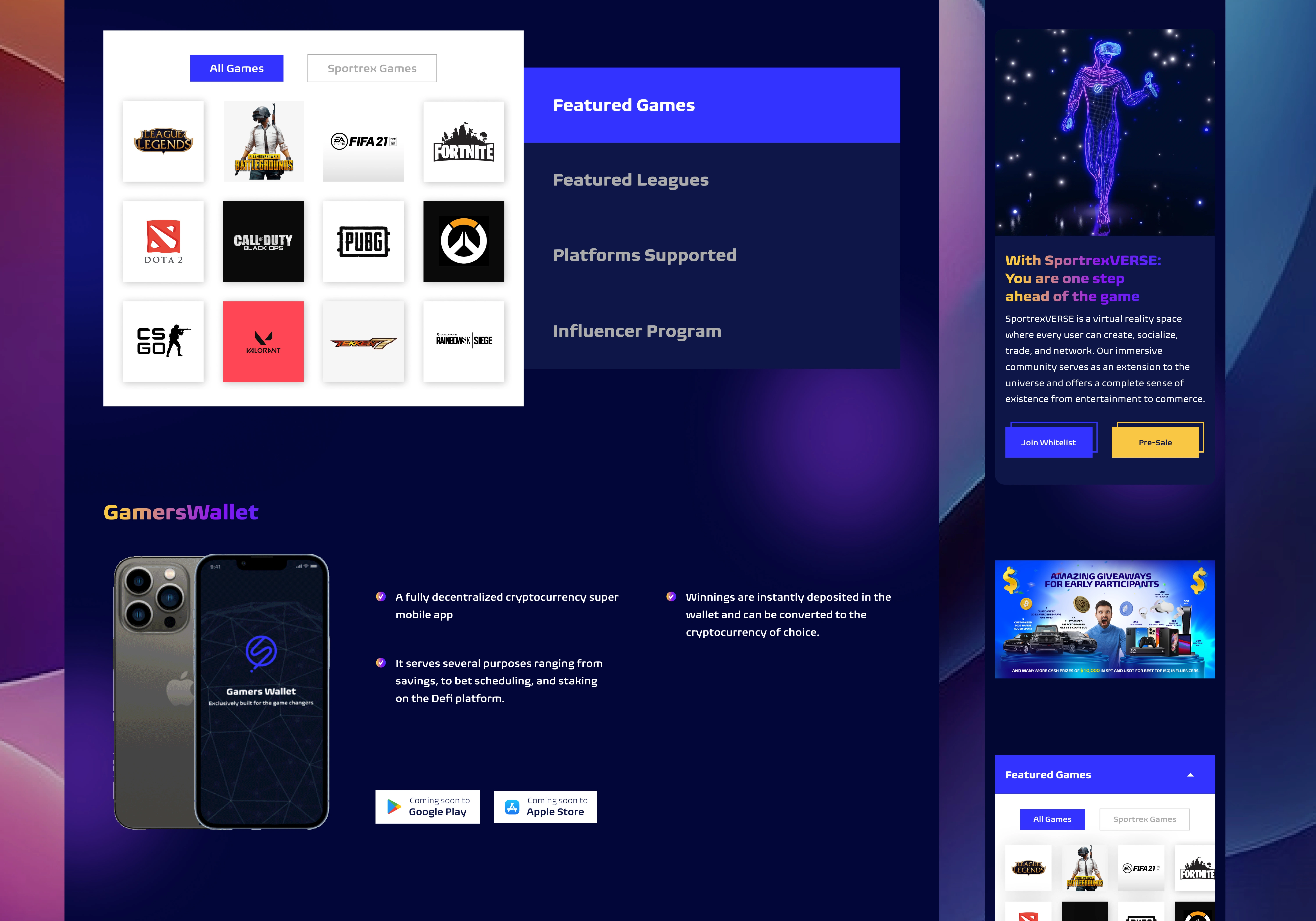 Sportrex is a decentralized GameFi super platform that merges play-to-earn gaming, social networking, NFTs, and metaverse experiences into one platform. As the UI/UX designer, my goal was to create a user journey that made Web3 accessible to gamers, influencers, and creators regardless of their blockchain experience.