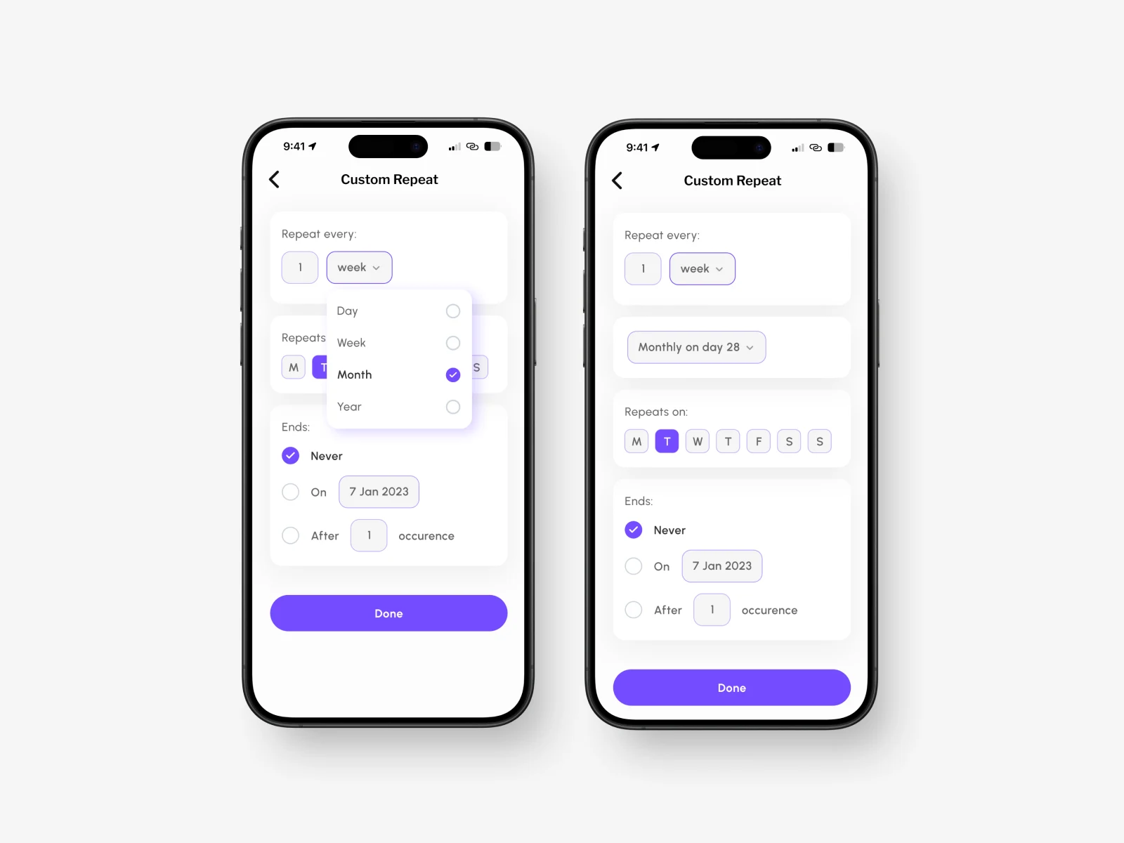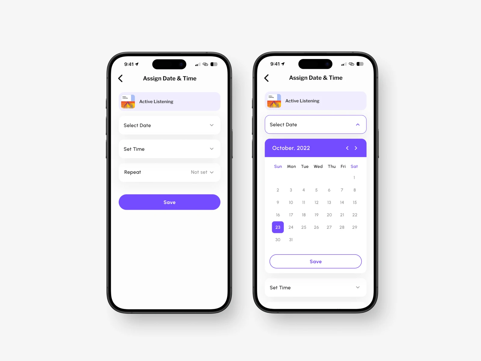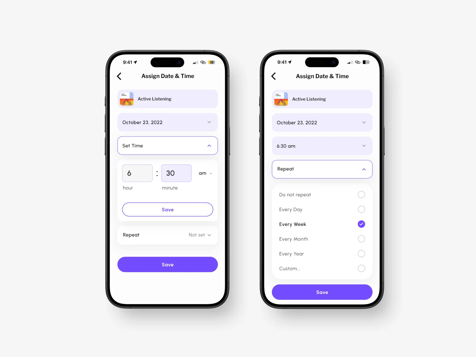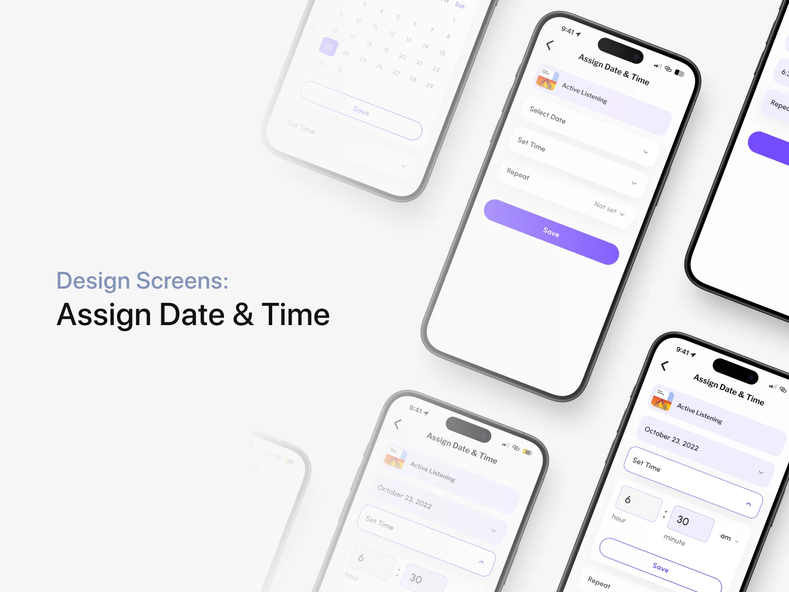 Mind relaxation app screen designs for an iOS app