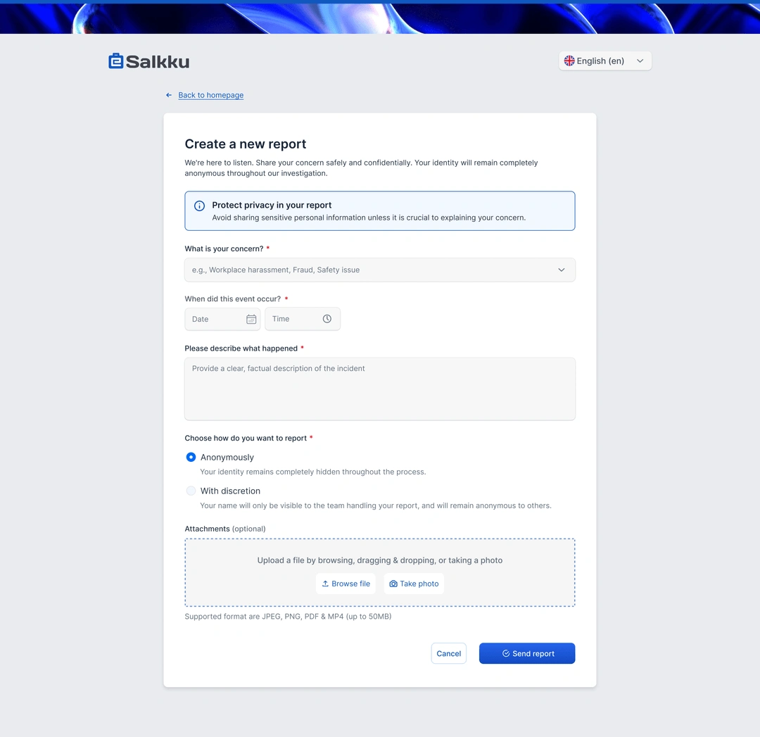 Complex reporting process: High friction in the whistleblower reporting flow discouraged submissions