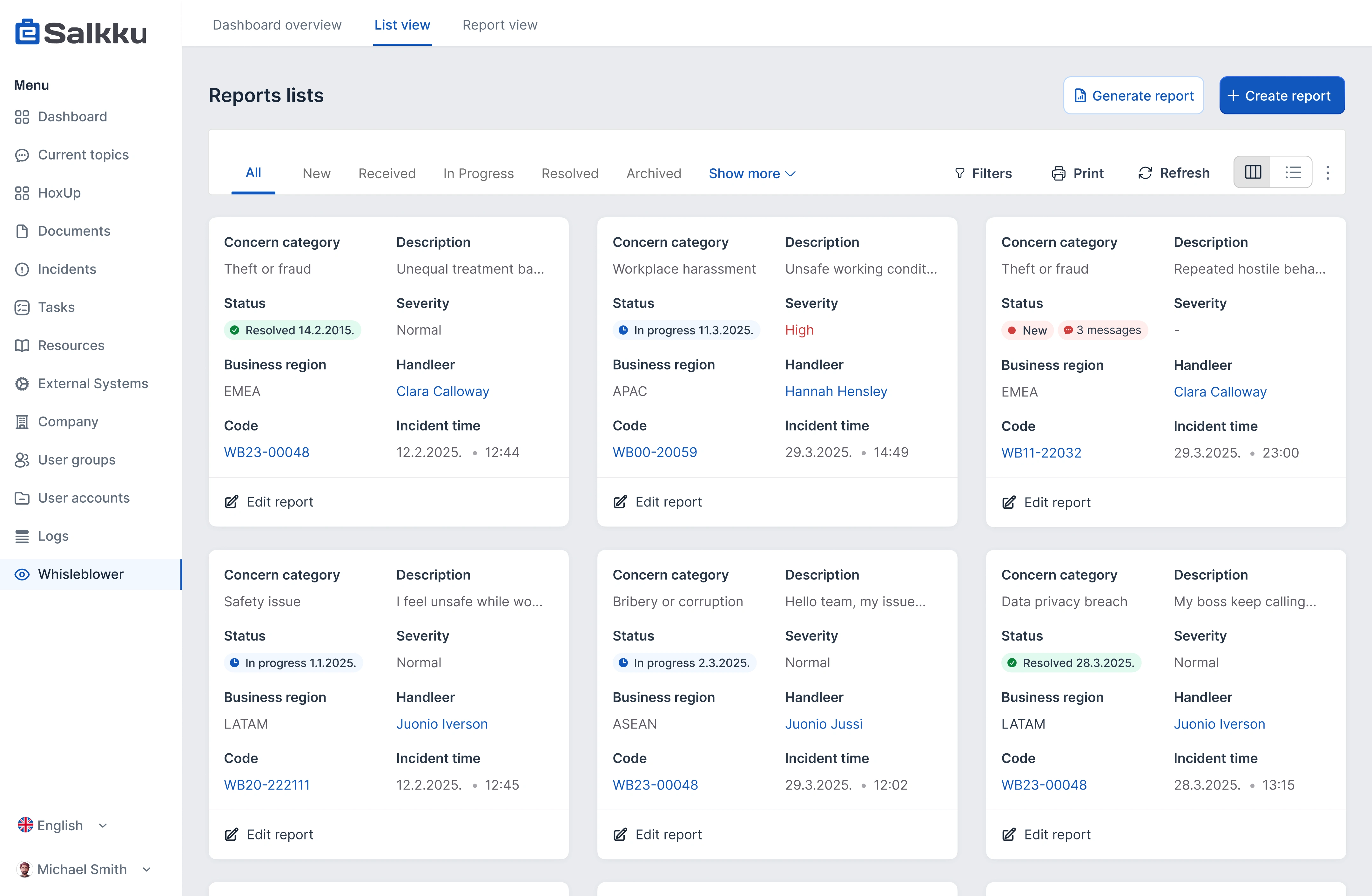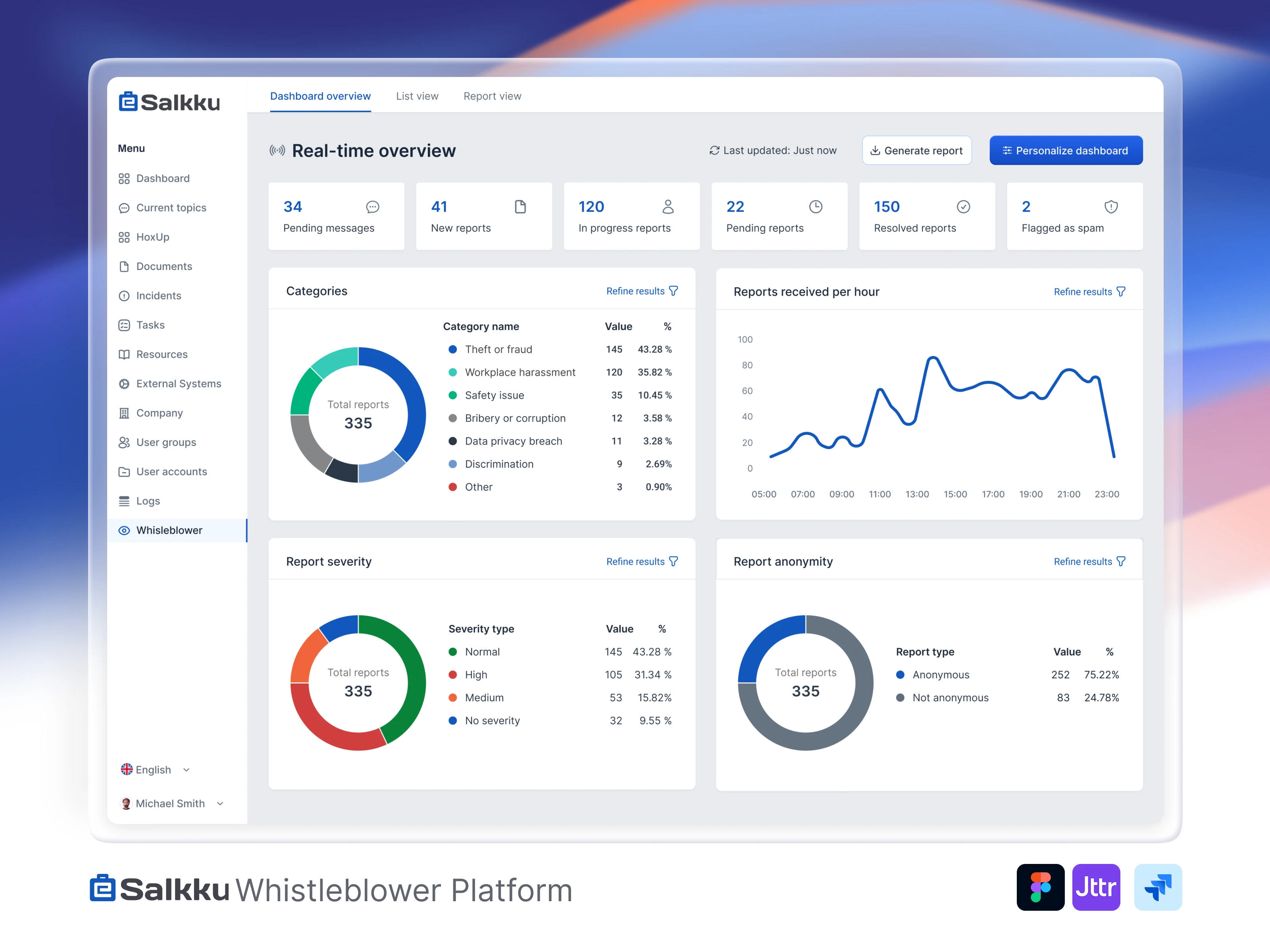 This project demonstrated how deeply UX impacts business outcomes, particularly in specialized B2B software where usability is often overlooked. By focusing on the emotional aspects of whistleblowing - specifically the need for trust, anonymity, and simplicity- a solution was created that not only improved metrics but fundamentally changed how users perceived the brand. The project also highlighted the value of thorough research and testing when redesigning complex systems, ensuring that changes were based on evidence rather than assumptions.