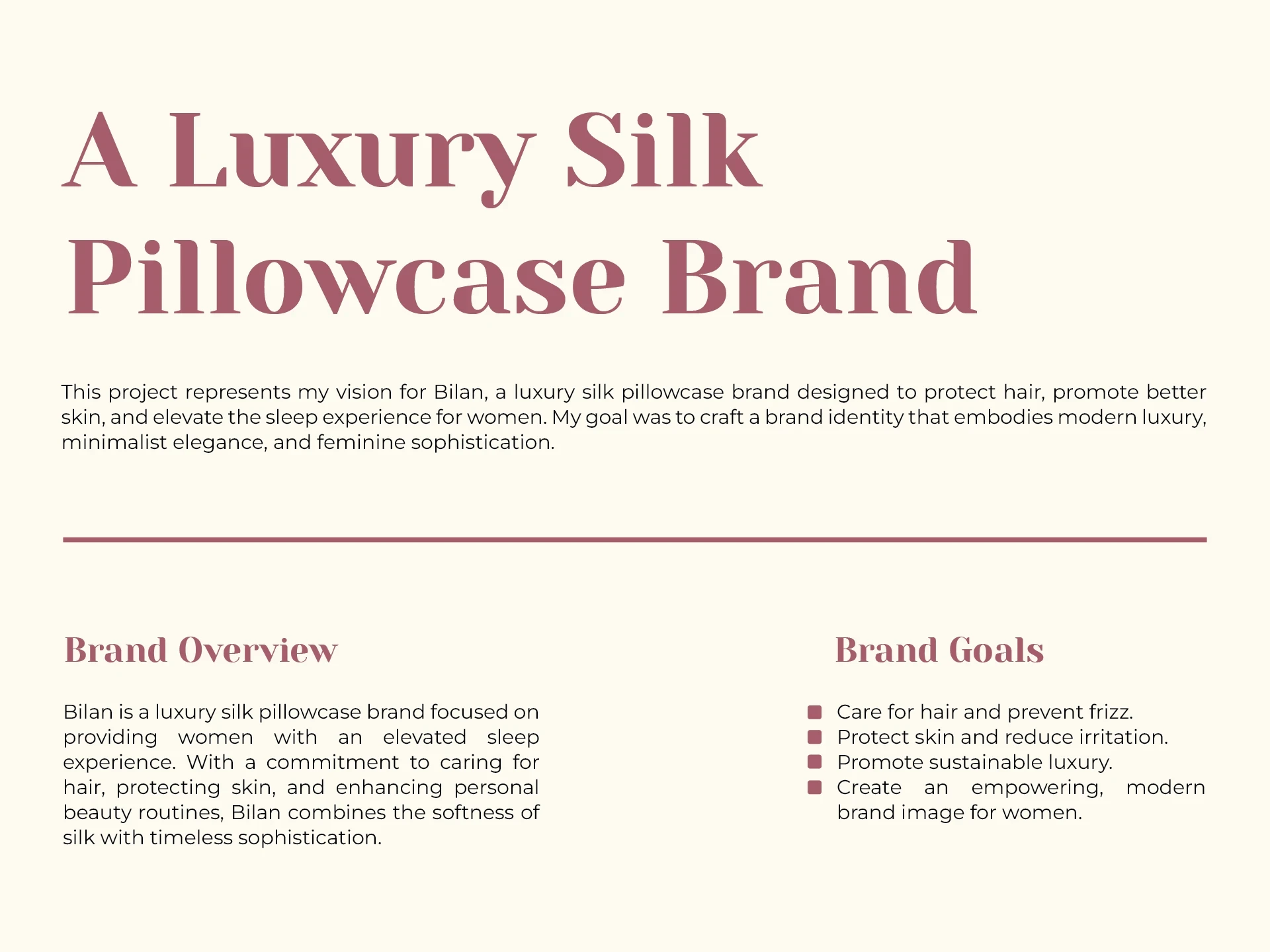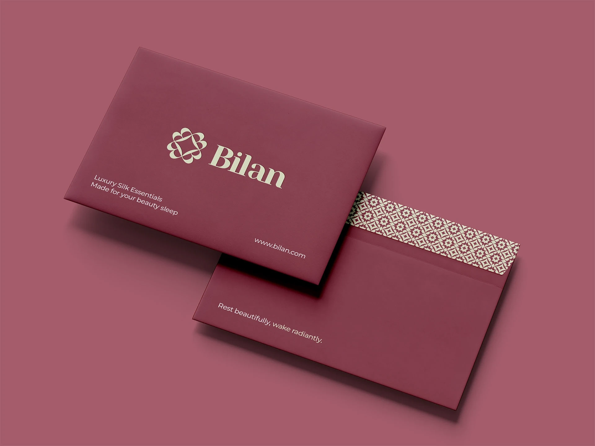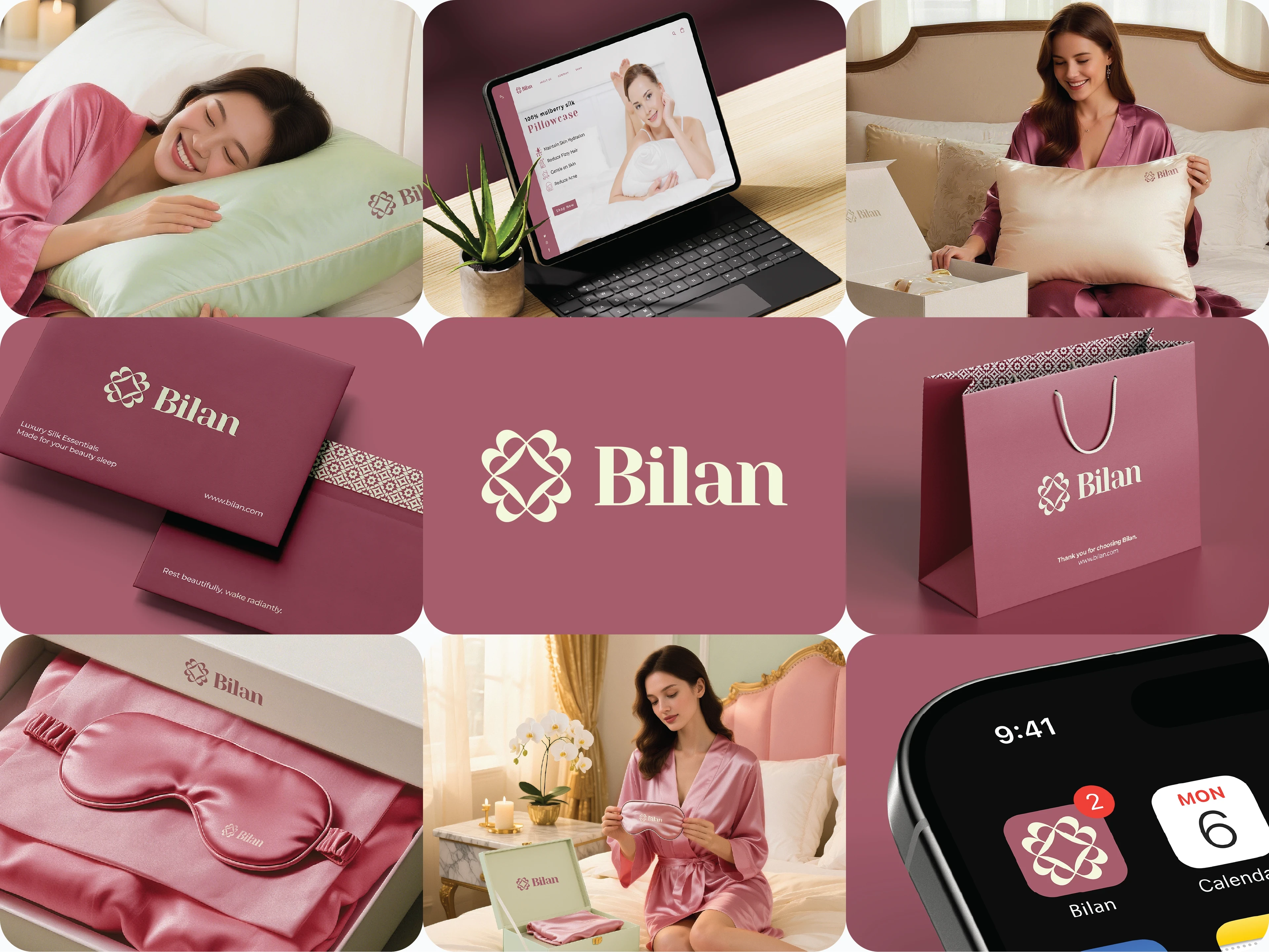 Luxury brand identity design for Bilan, a premium silk pillowcase and sleepwear brand.