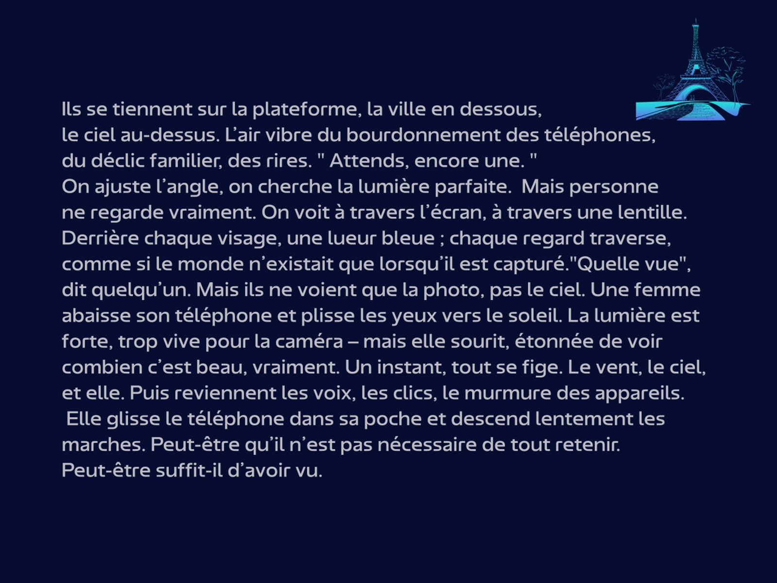Un instant figé entre ciel et écrans — sur la lumière, la perception et ce qu’il reste quand on cesse de tout capturer.