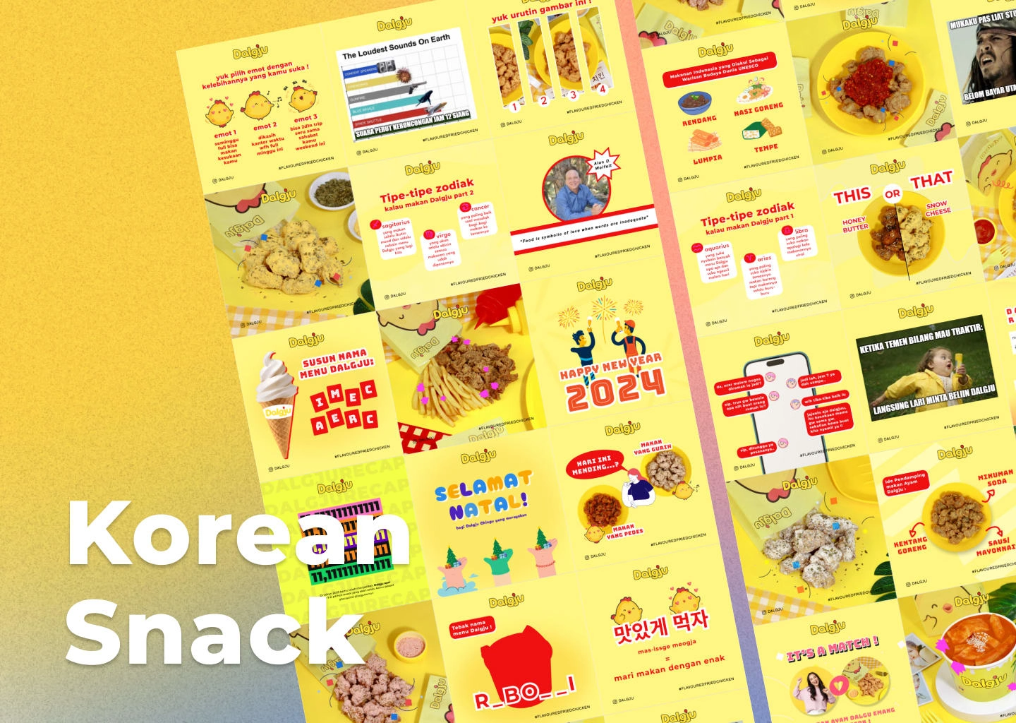 Here's my design for 3 different clients. First is a company that gives bag and spa services that use pink as their brand color. The content on their social media focuses on promotion and giving the company an apology. Next are FnB companies that sell Korean snacks. Their focus is on interacting with their followers, so the content is always colorful and uses bright colors. Last is a local church that focuses on telling words from the Bible, so I adapt the design following every story that I want to post.