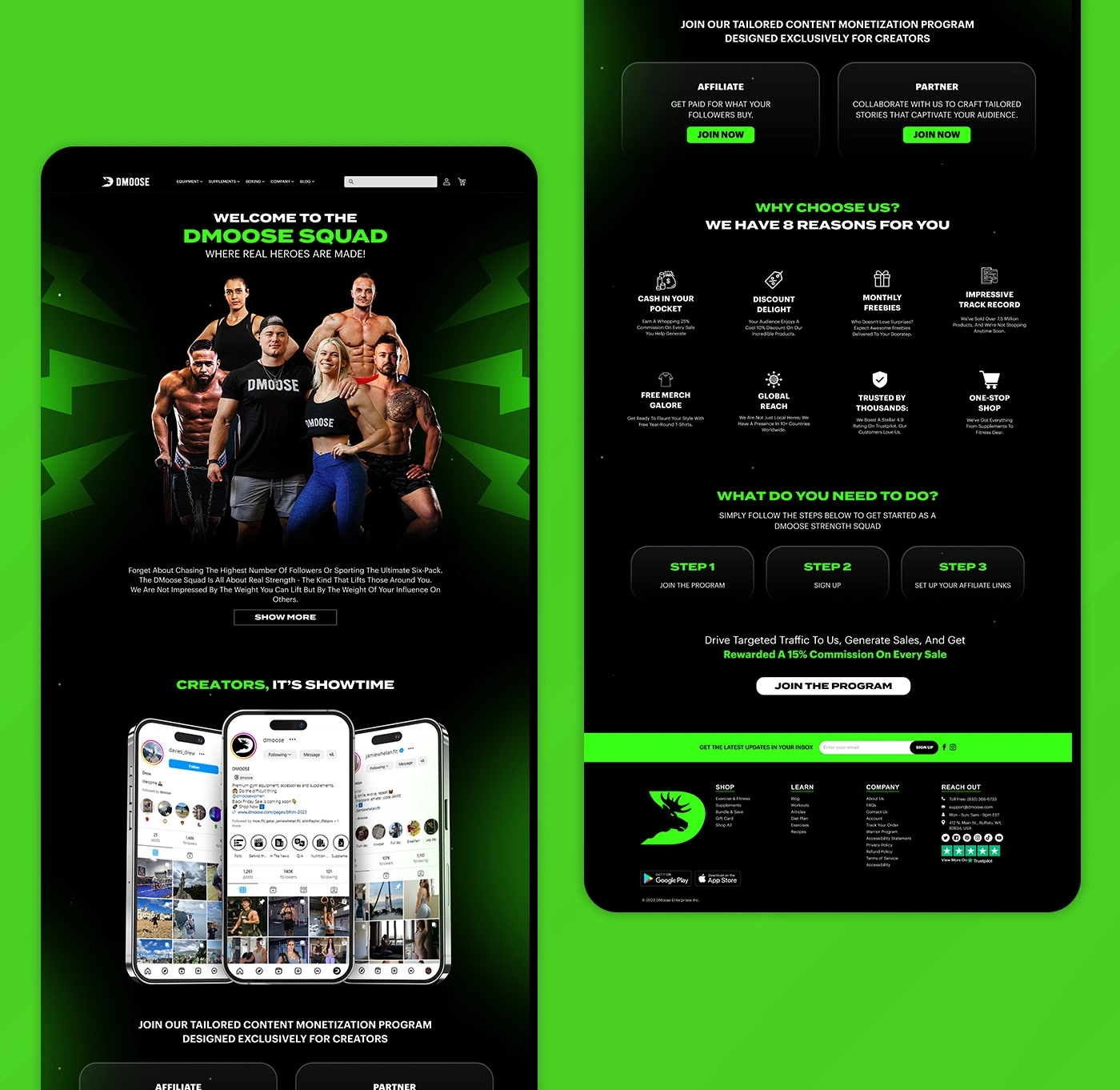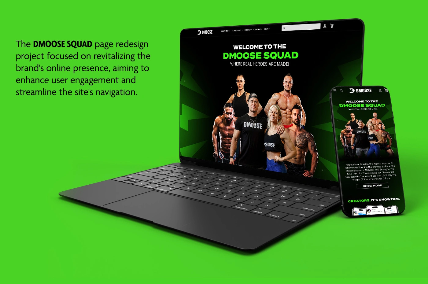As part of a dynamic design team, we undertook the comprehensive redesign of the DMOOSE squad page, focusing on amplifying the brand's online impact and user engagement. Our collaborative effort involved a holistic approach, reimagining the layout, color scheme, and overall user interface to align with the latest in web design trends and user expectations.